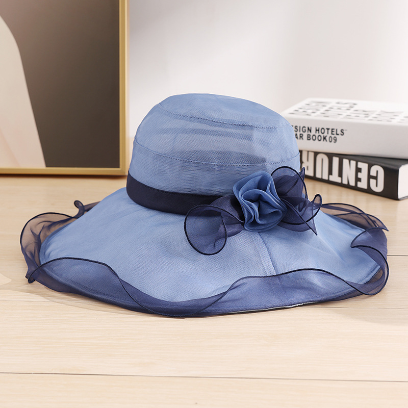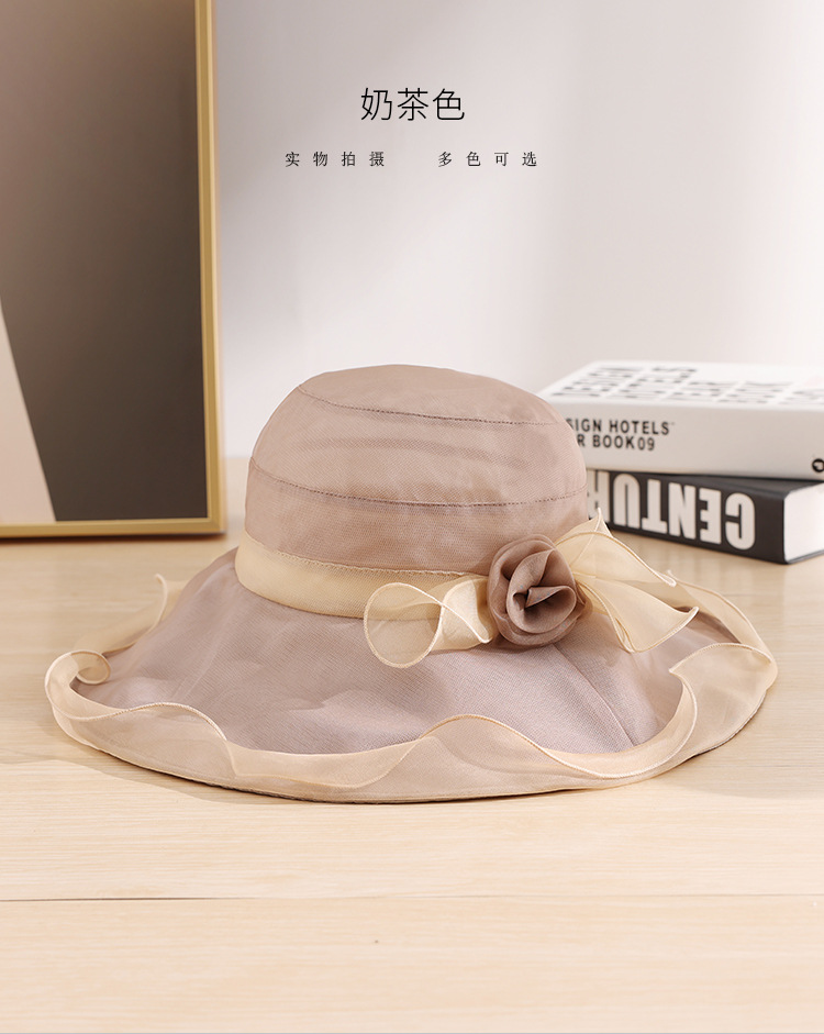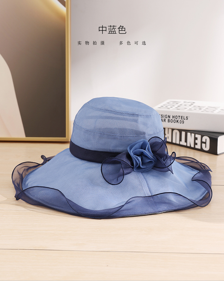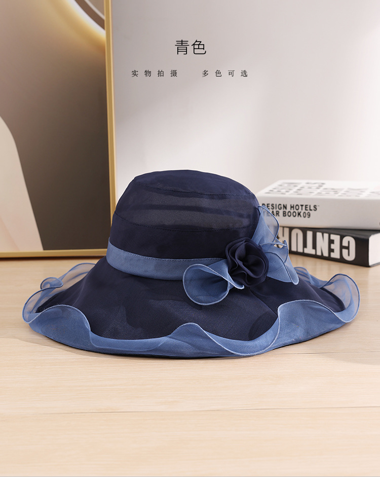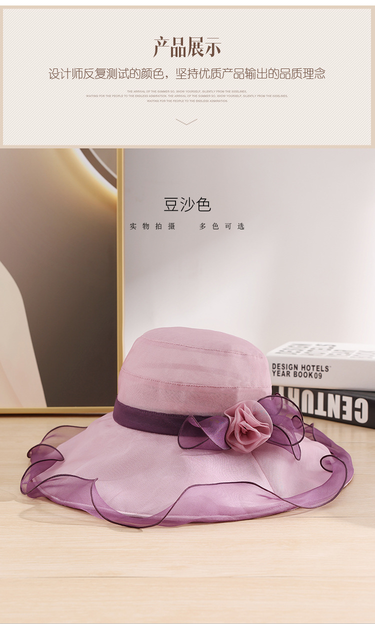 부타 큰 테두리 태양 모자 여성의 여름 우아한 태양 모자 뽕나무 실크 큰 테두리 태양 모자 파도 가장자리 0699
