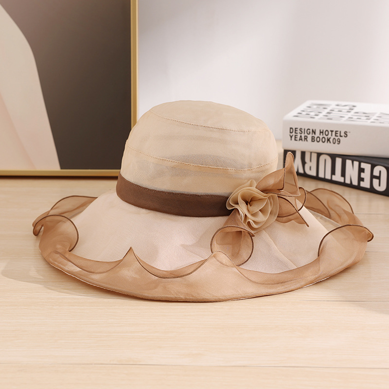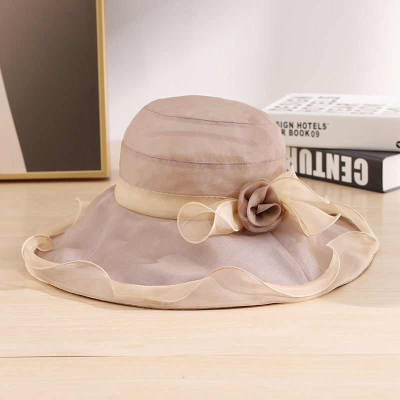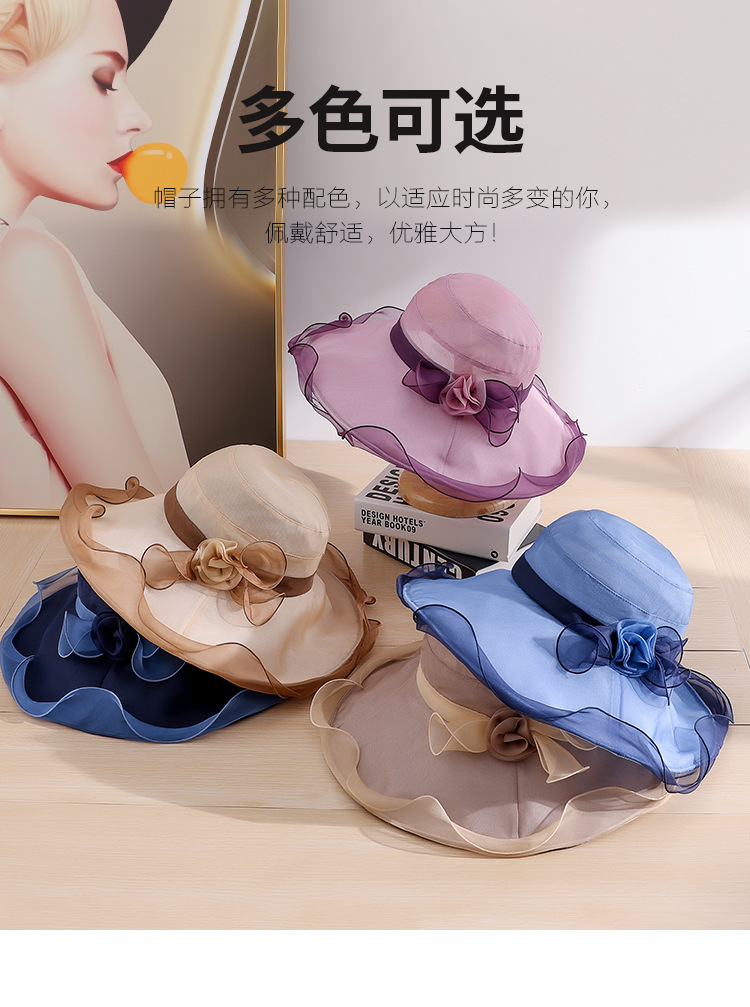 부타 큰 테두리 태양 모자 여성의 여름 우아한 태양 모자 뽕나무 실크 큰 테두리 태양 모자 파도 가장자리 0699스토어 가기
