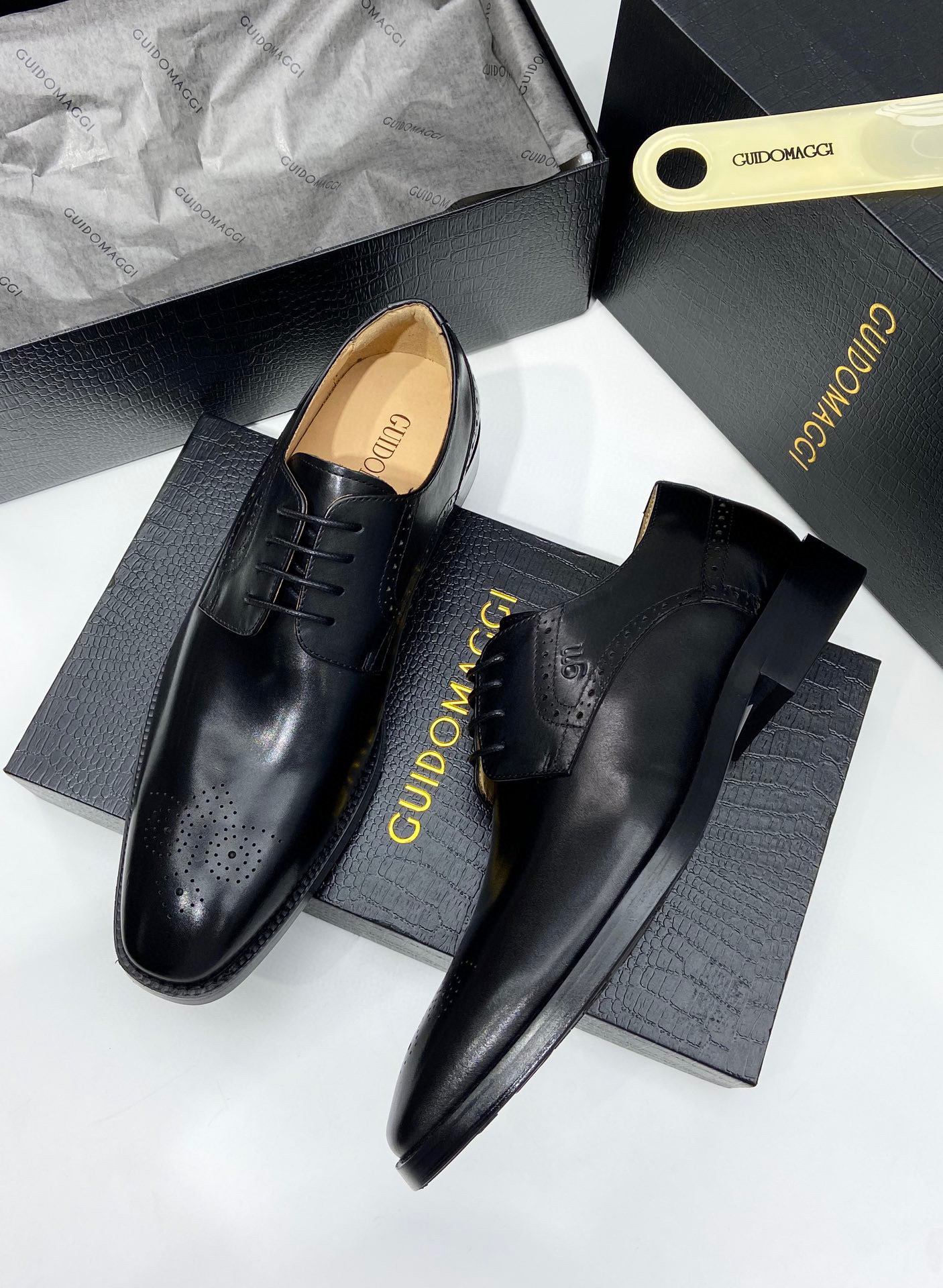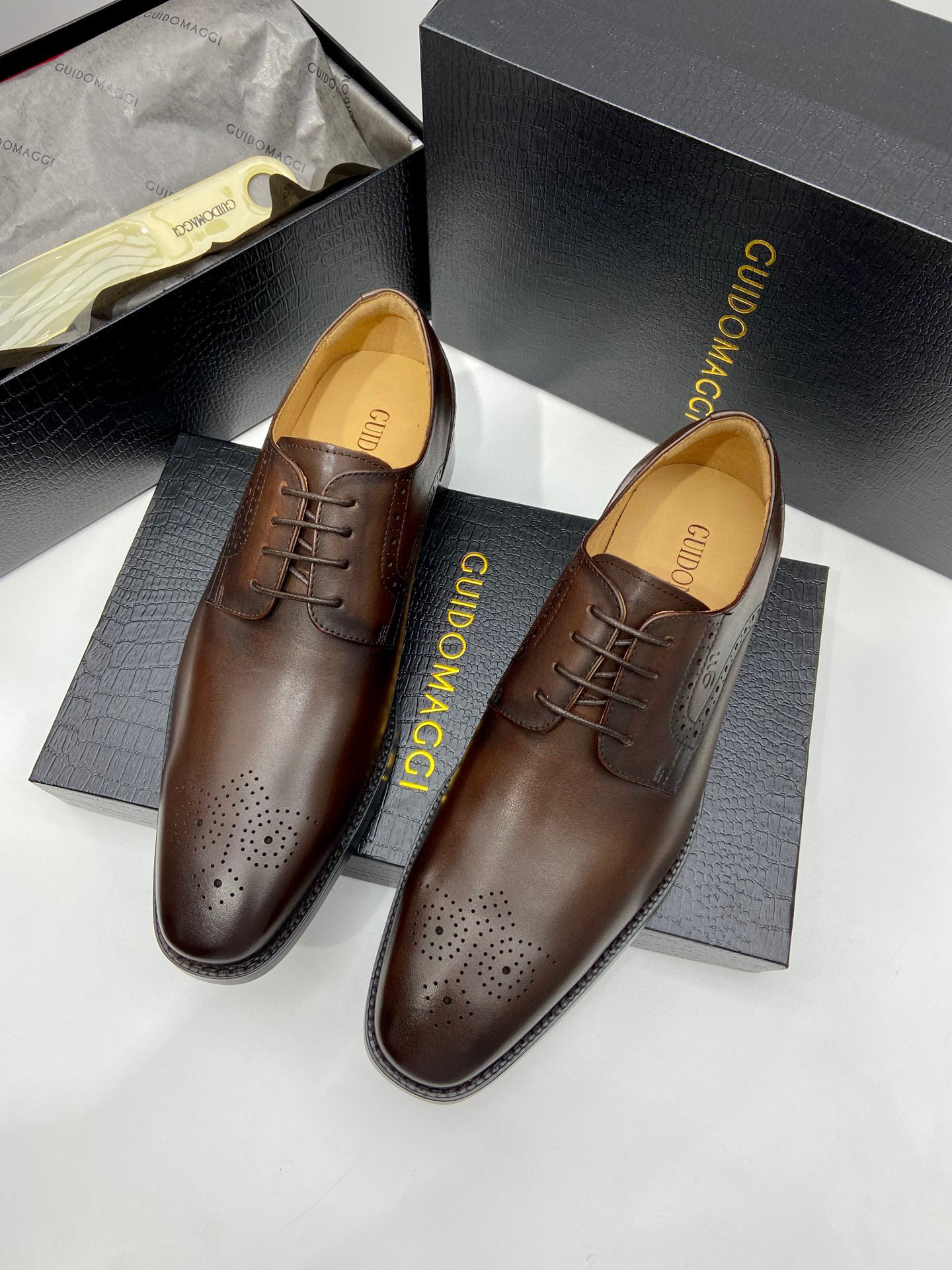 공장 도매 대외 무역 오리지널 주문 정품 가죽 남성 가죽 신발 사각 발가락 레이스 업 펀치 청키 힐 하이 엔드 비즈니스 가죽 신발