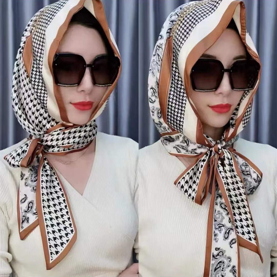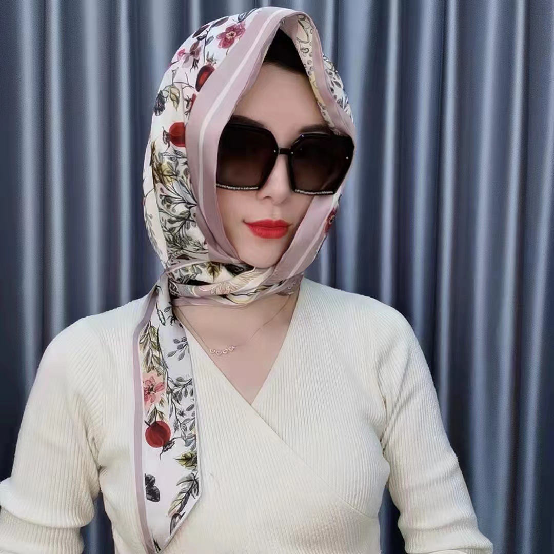봄과 여름 더블 레이어 양면 인쇄 올 매치 패션 헤드 스카프 예술적 기질 발가락 캡 다기능 선 스크린 스카프 모자스토어 가기