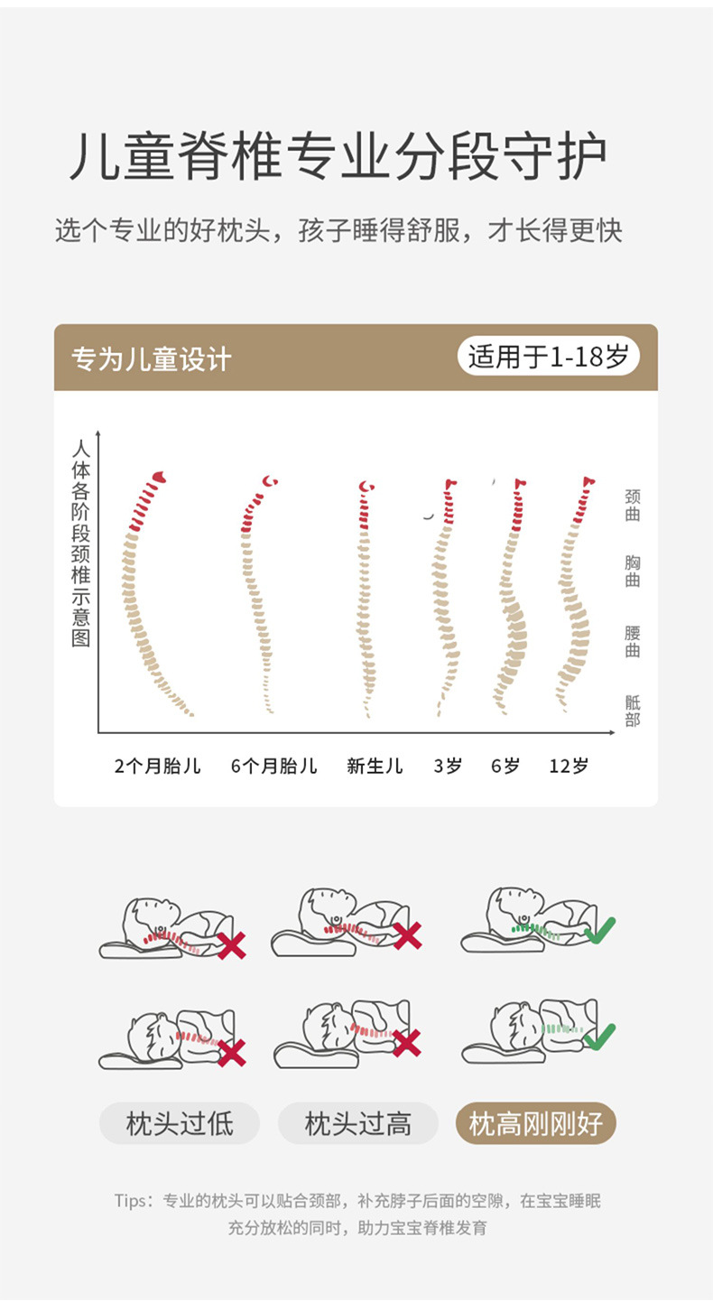Babdou 어린이 베개 1 ~ 15 세 계층 목 베개 아기 유치원 초등학생 사계절 파티션 베개