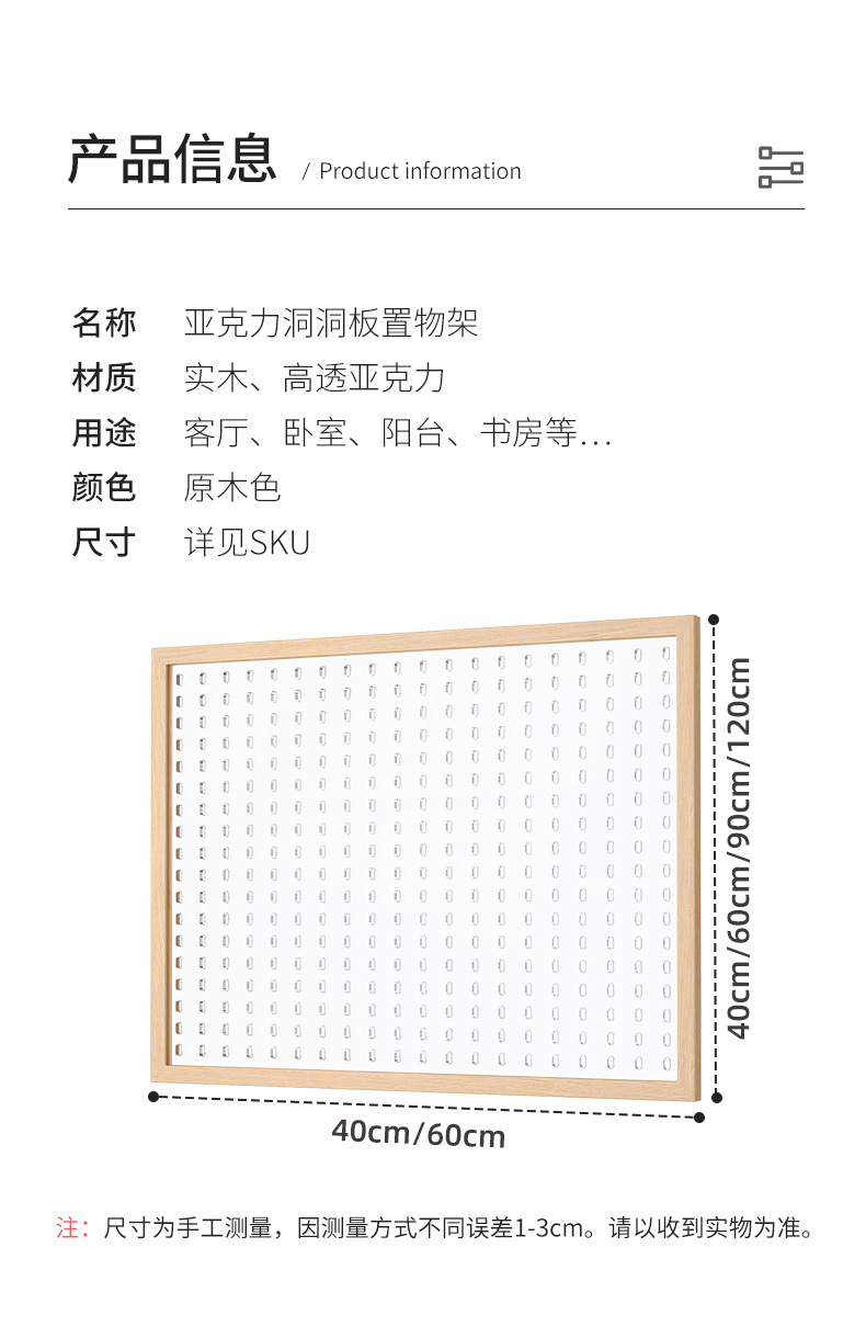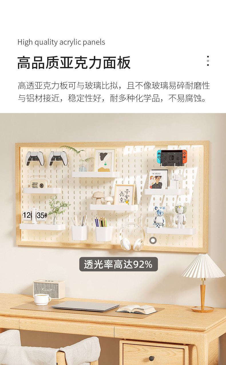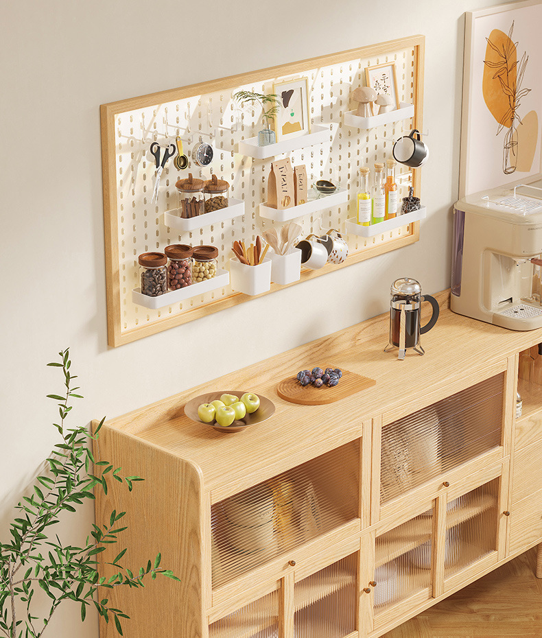 아크릴 수직 구멍 단단한 나무 벽 저장 랙 저장 랙 구멍 보드 입구 거실 장식 교수형 보드 후크
