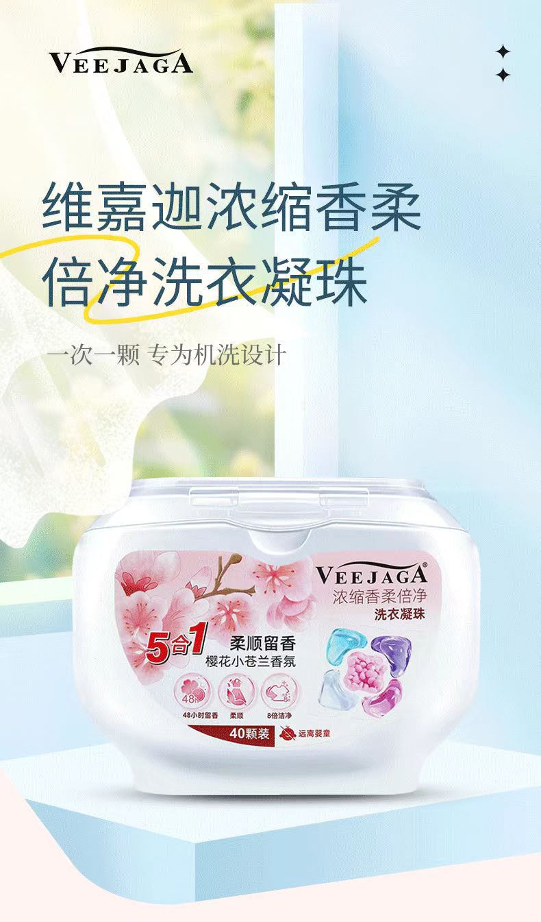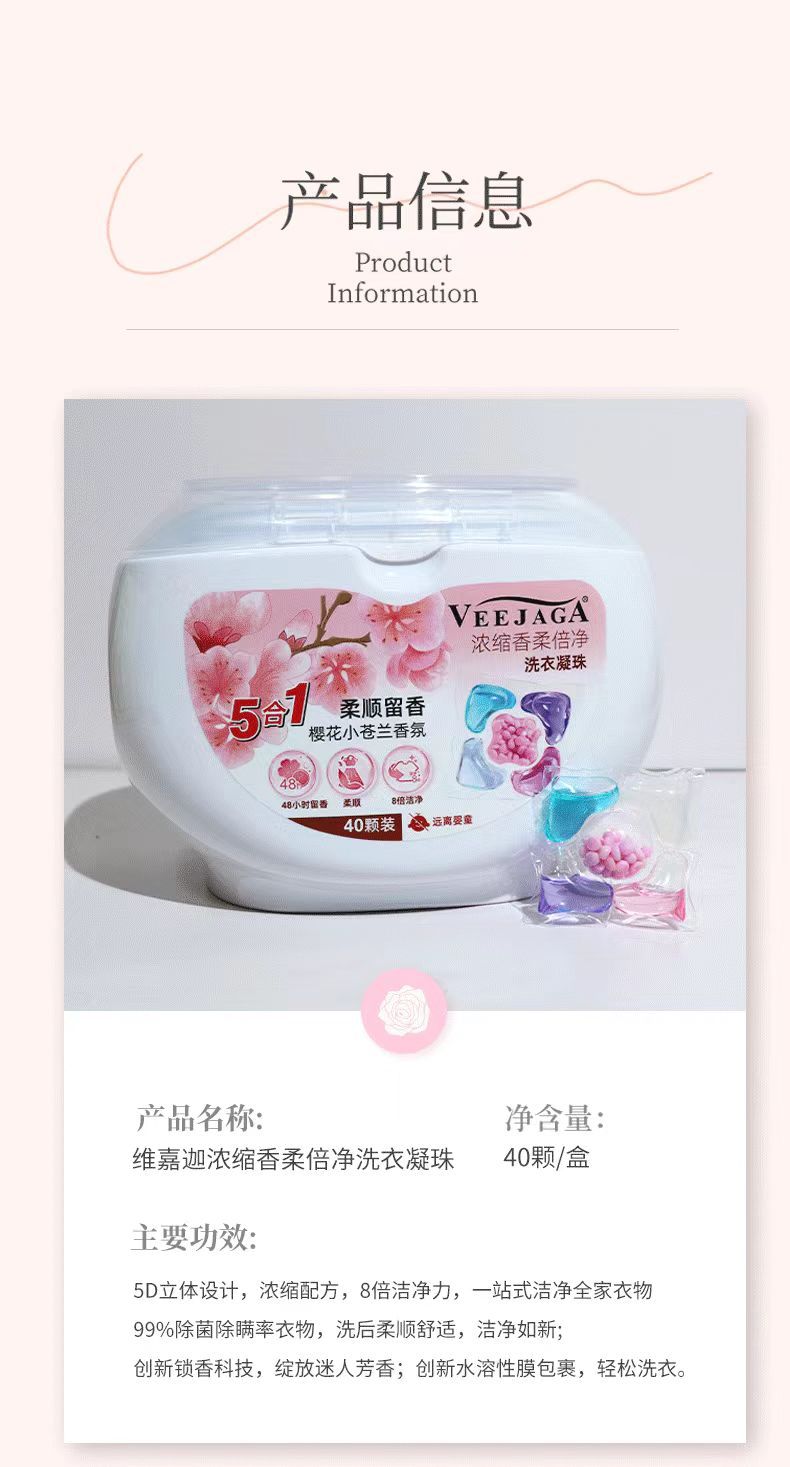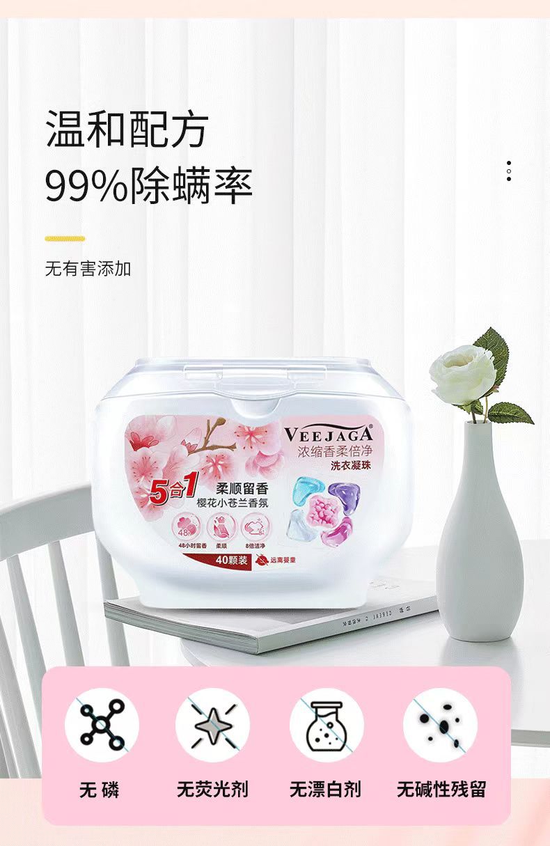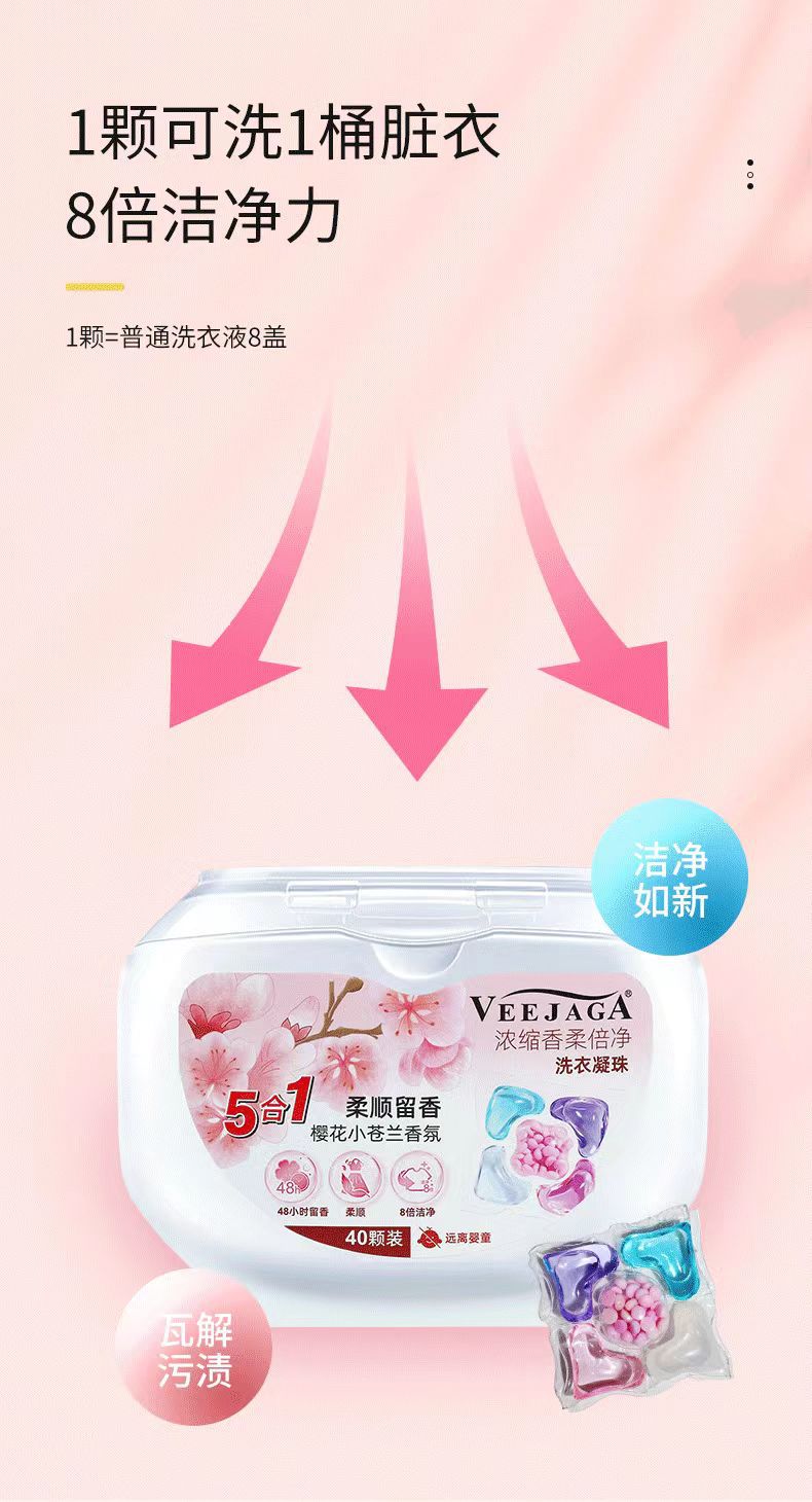 Veejaga 5 공동 세탁 응고 구슬 향기로운 구슬 깊은 청소 지속 향수 멀티 효과 집중 세탁 공스토어 가기