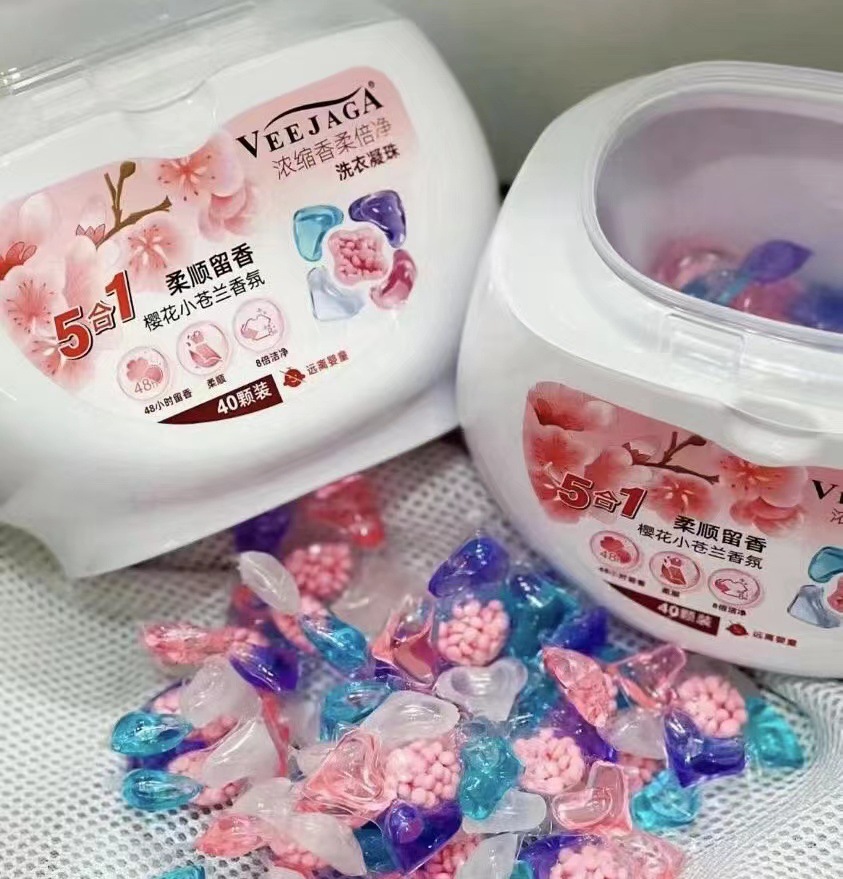 Veejaga 5 공동 세탁 응고 구슬 향기로운 구슬 깊은 청소 지속 향수 멀티 효과 집중 세탁 공