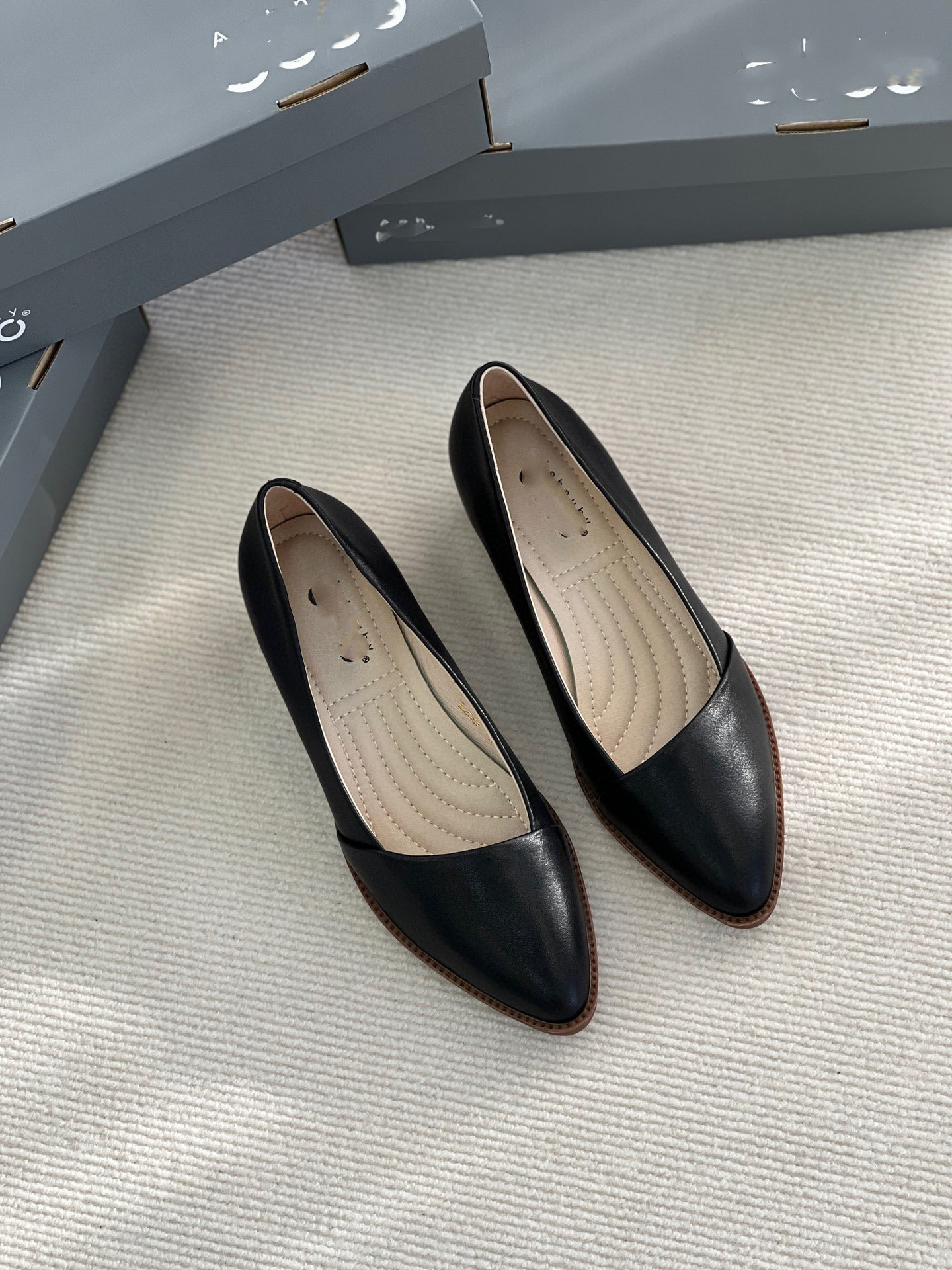 공장 도매 대외 무역 오리지널 주문 정품 가죽 싱글 레이어 신발 고품질 뾰족한 로우 컷 청키 힐 통근 하이힐 신발