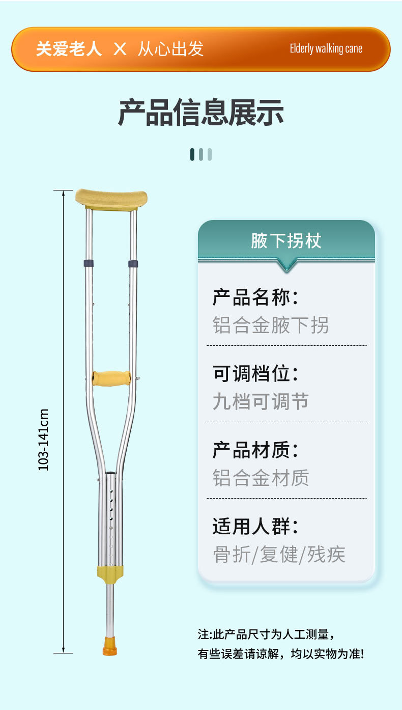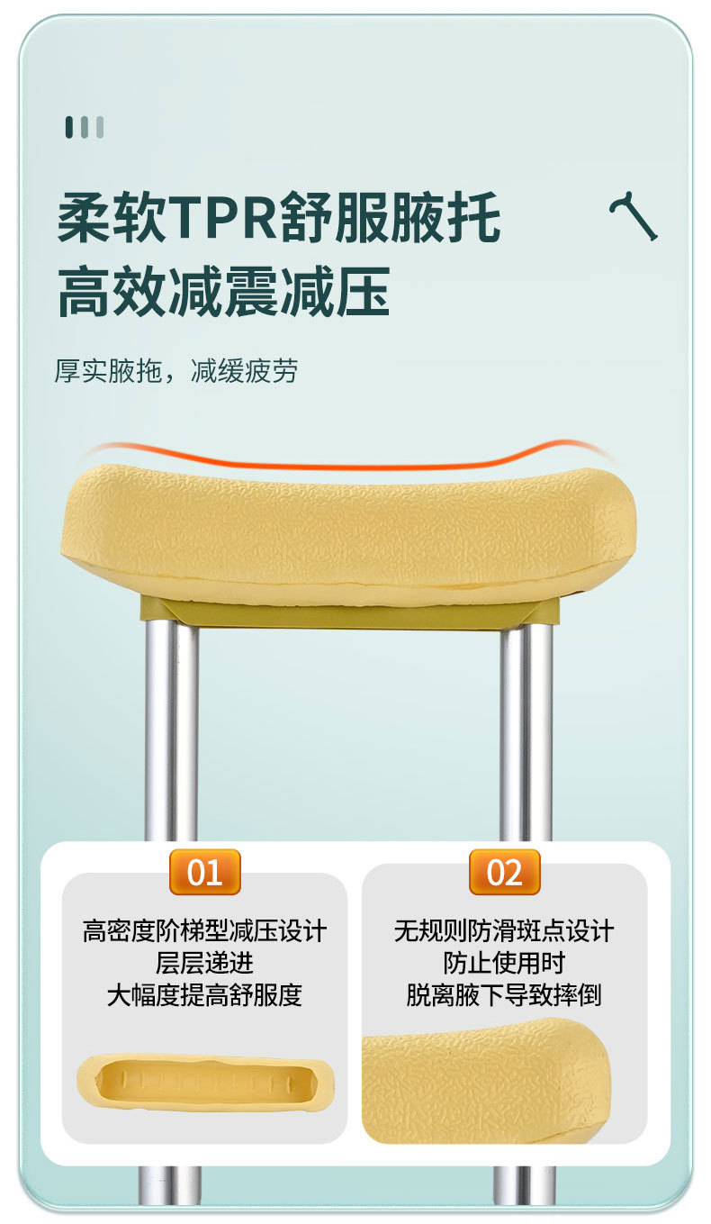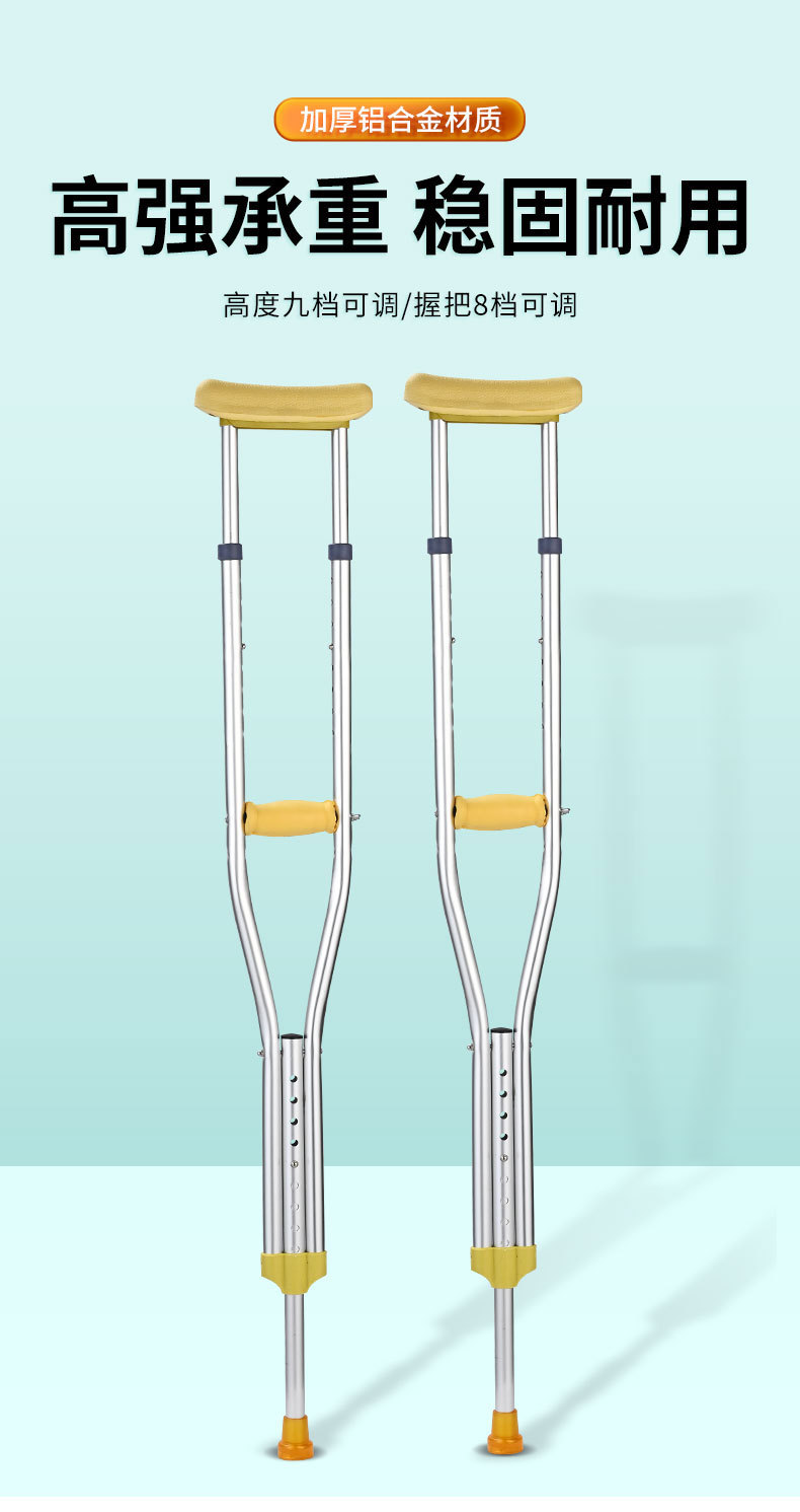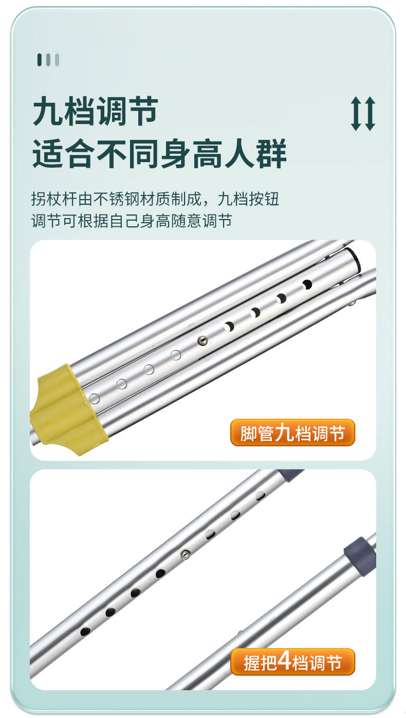 공장 도매 더블 리프트 겨드랑이 목발 높이 조정 스테인레스 스틸 단일 다리 미끄럼 방지 낙하 방지 알루미늄 합금 목발 노인스토어 가기