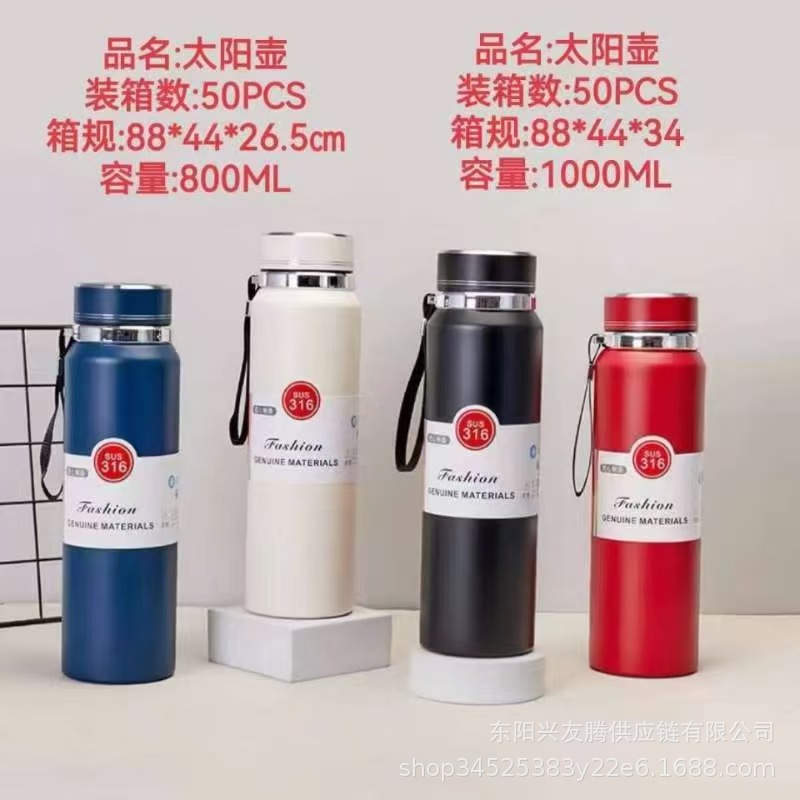 새로운 316 스테인레스 스틸 보온병 컵 차 누설 리프트 로프 800ML 대용량 태양 냄비 야외 등산 주전자스토어 가기