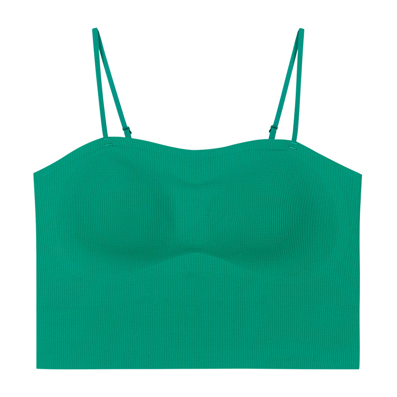 3105 와플 무봉제 끈 없는 여성용 여름 탑, 가슴 패드 내장, 일체형 컵, 아름다운 등 라인스토어 가기