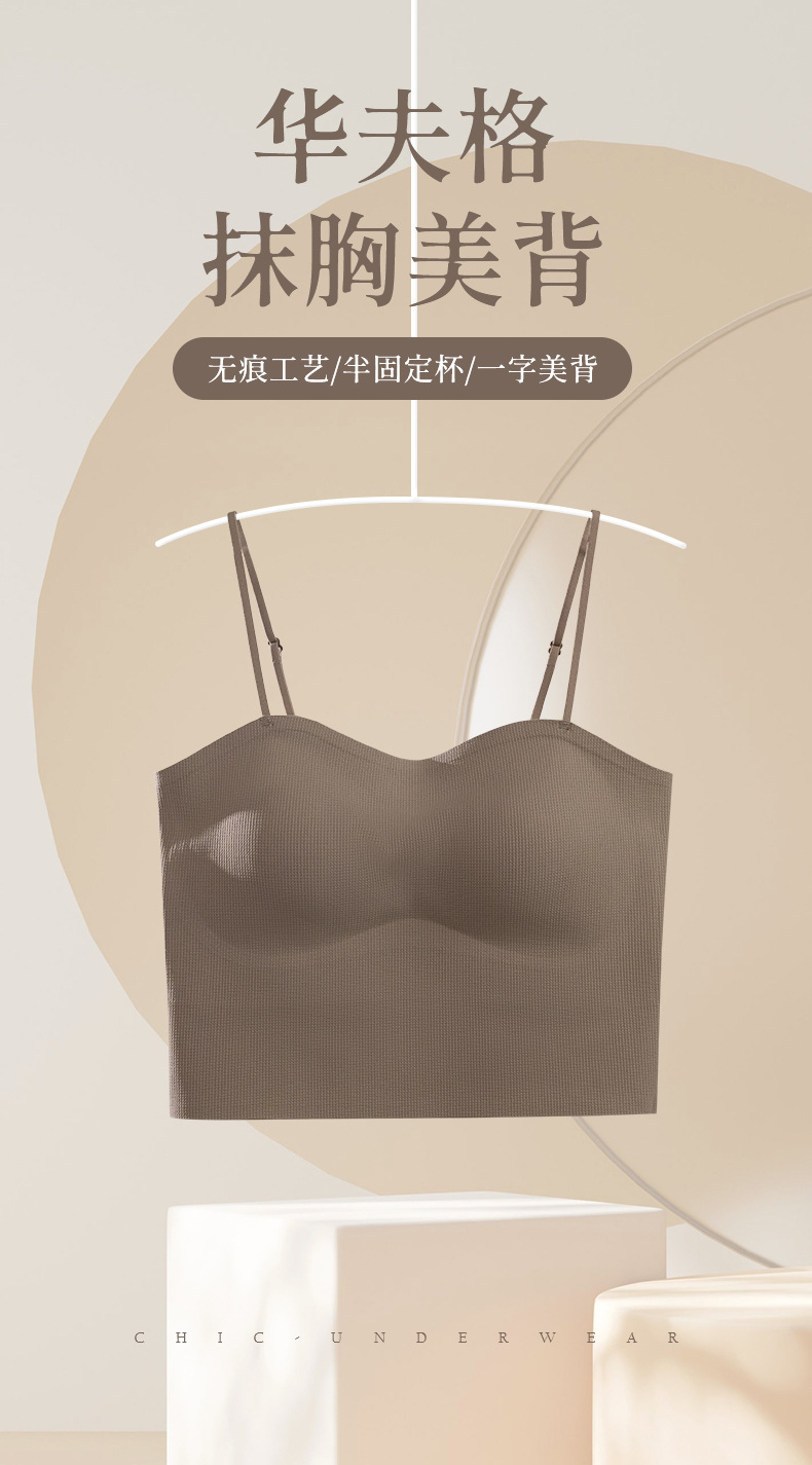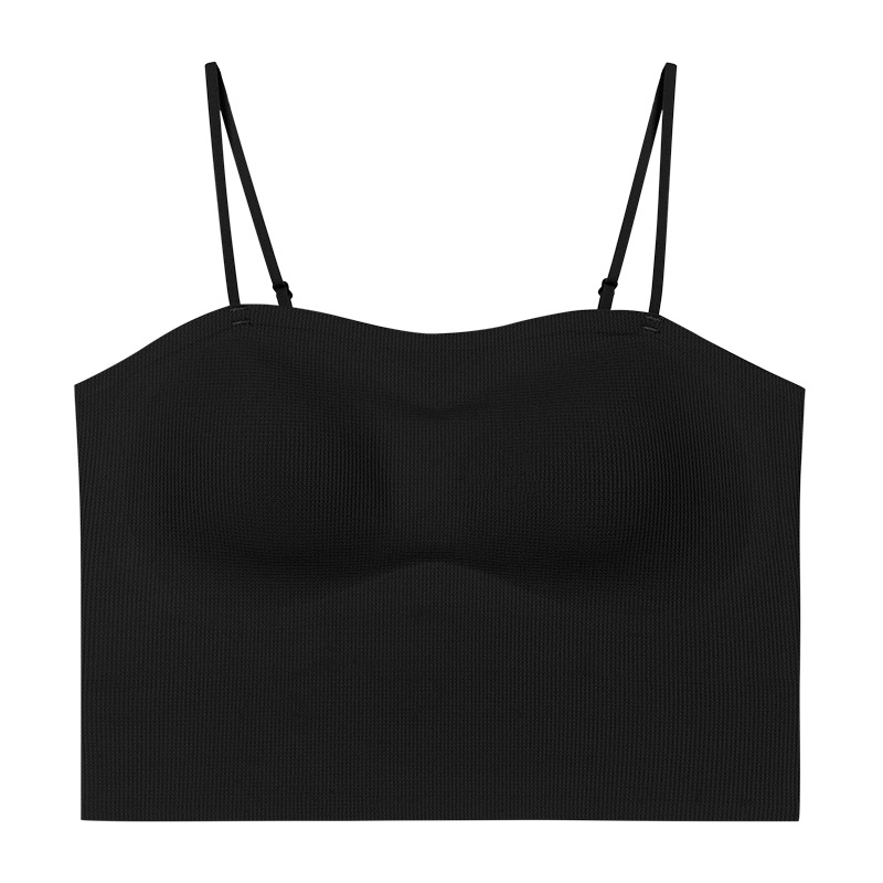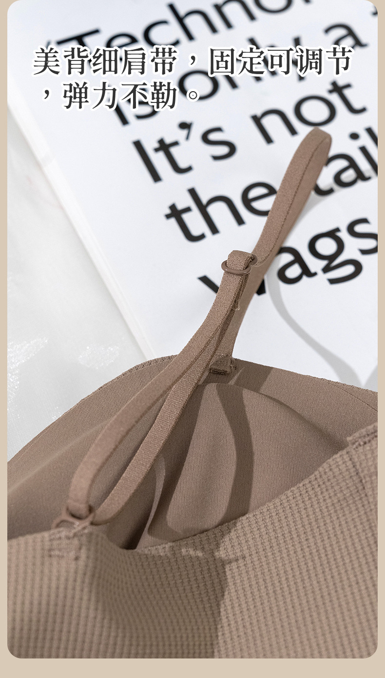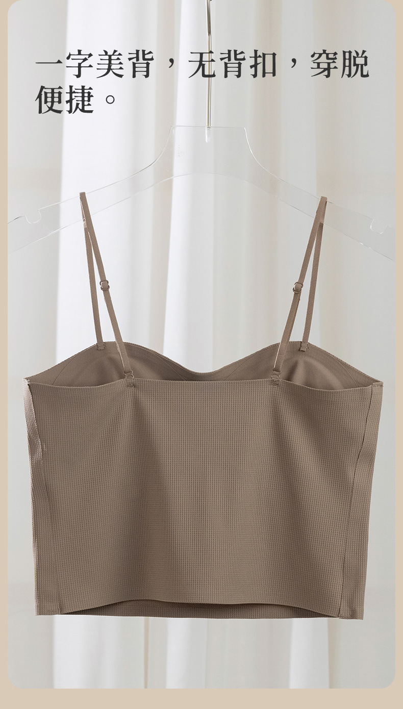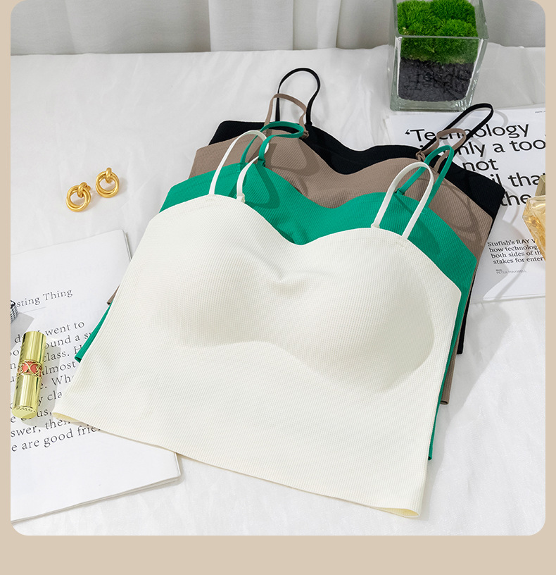 3105 와플 무봉제 끈 없는 여성용 여름 탑, 가슴 패드 내장, 일체형 컵, 아름다운 등 라인