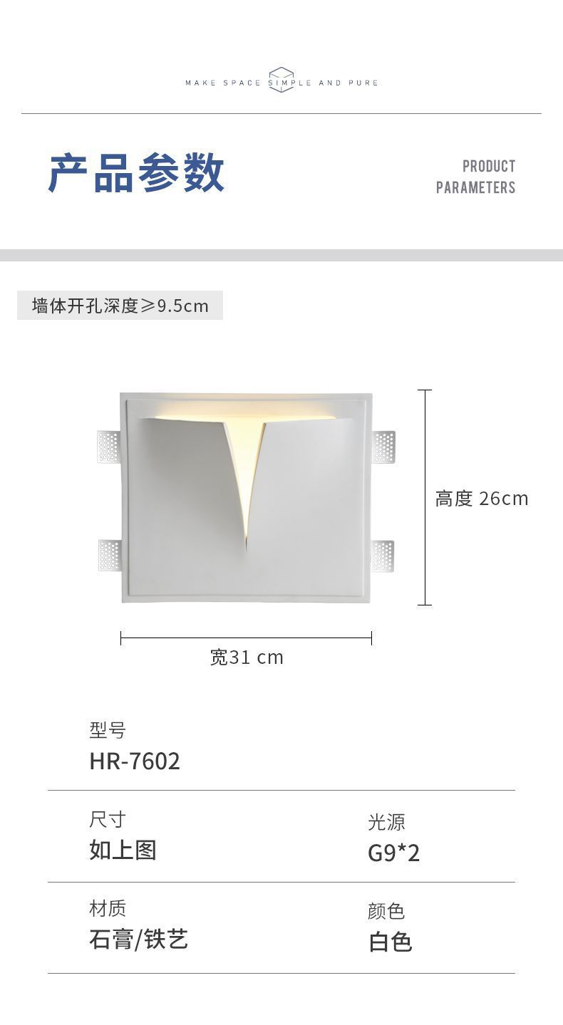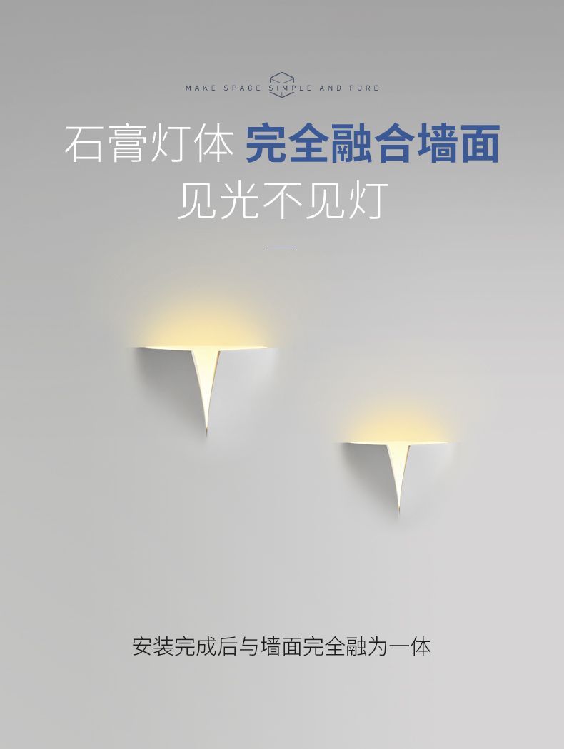 석고 벽 램프 내장 프레임리스 거실 램프 창조적 인 침실 침대 옆 램프 간단한 복도 통로 벽 램프