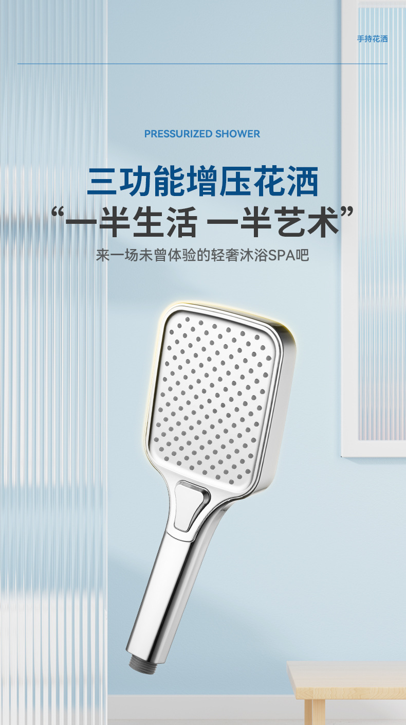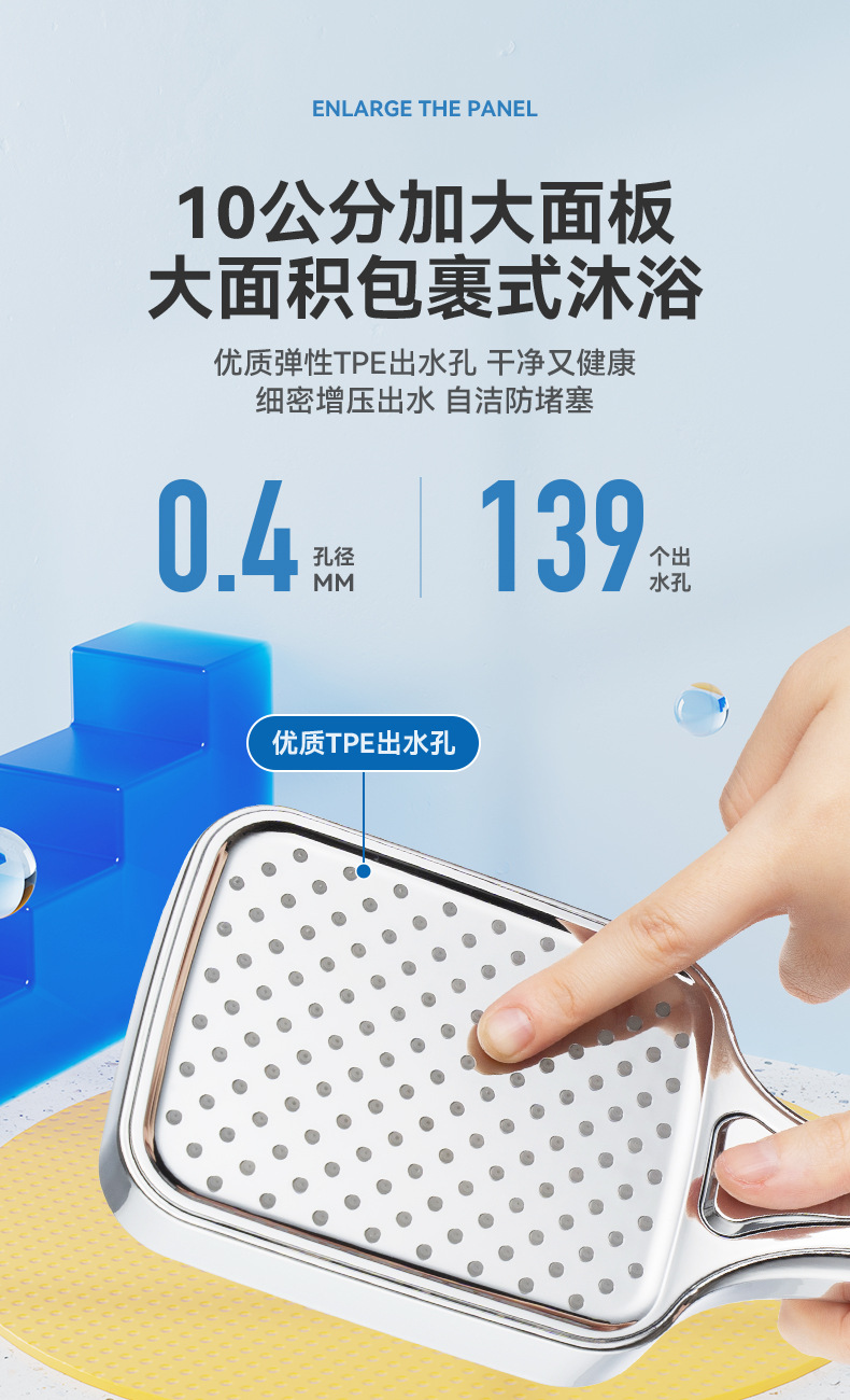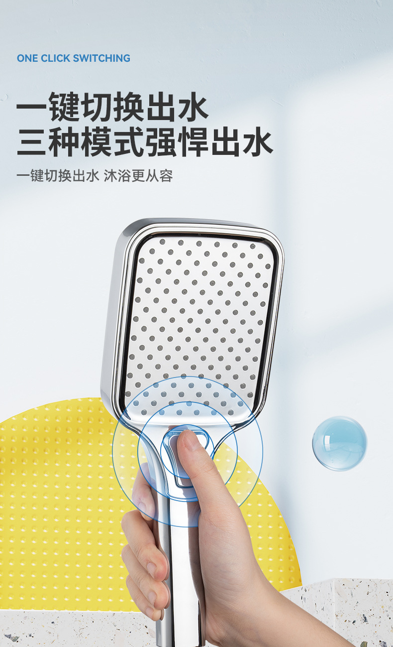 사각형 가압 샤워 헤드 욕실 샤워 샤워 휴대용 가압 실리콘 배출구 호텔 샤워 헤드