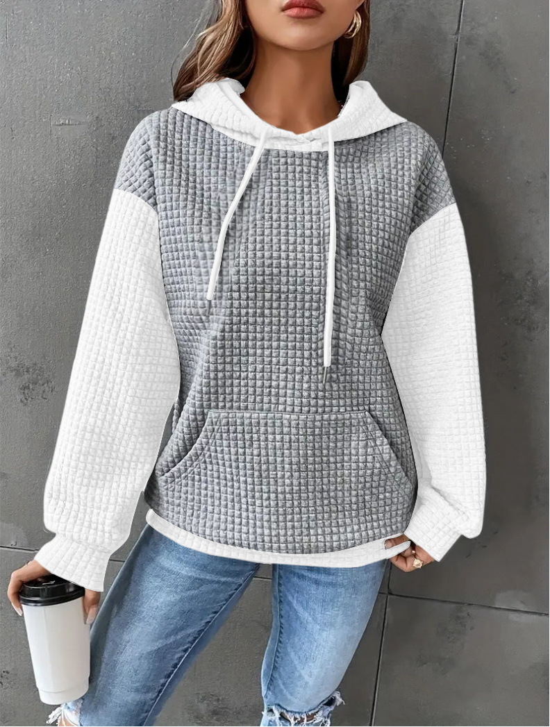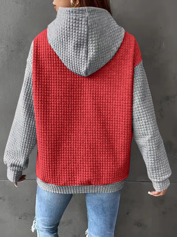 2024 봄, 가을, 겨울 유럽 및 미국 아마존 TEMU 캐주얼 루즈핏 스포츠 긴팔 배색 포켓 후드티 여성복스토어 가기
