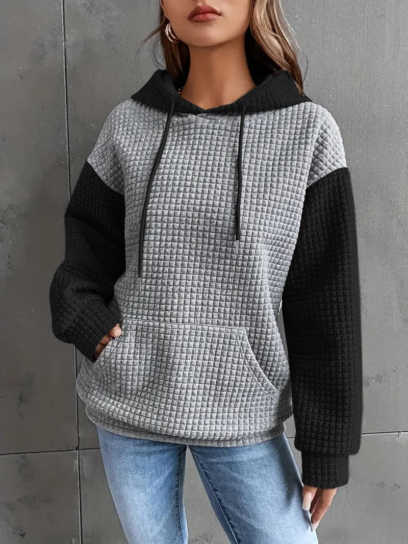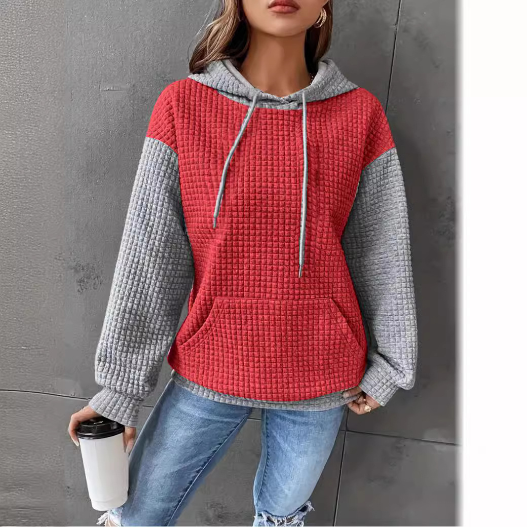 2024 봄, 가을, 겨울 유럽 및 미국 아마존 TEMU 캐주얼 루즈핏 스포츠 긴팔 배색 포켓 후드티 여성복