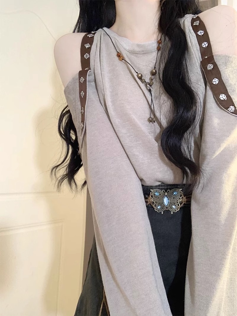 이른 가을 여성의 오프 숄더 탑 여성 셔츠 여성용 긴팔 셔츠 얇은 올 매치 순수한 욕망 스타일 달콤한 뜨거운 소녀 소녀 소녀 느낌