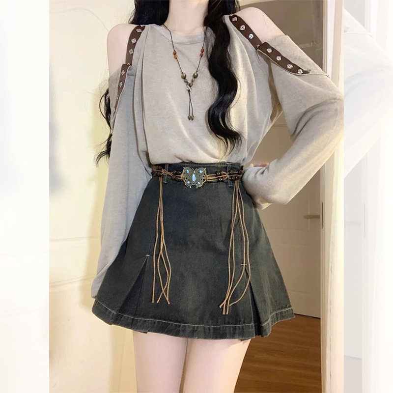 이른 가을 여성의 오프 숄더 탑 여성 셔츠 여성용 긴팔 셔츠 얇은 올 매치 순수한 욕망 스타일 달콤한 뜨거운 소녀 소녀 소녀 느낌스토어 가기