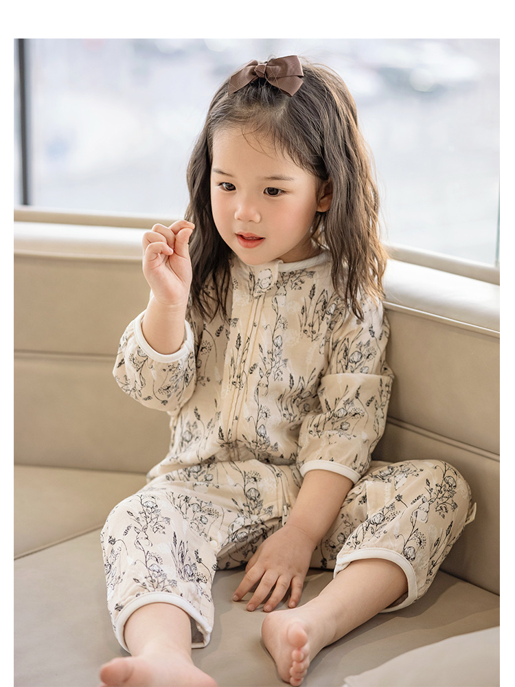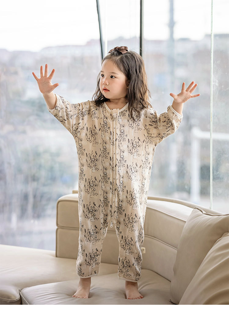 BabyStormi 유아 여름 2 층 3/4 소매 대나무 섬유 분할 다리 침낭 소년과 소녀 홈 등반