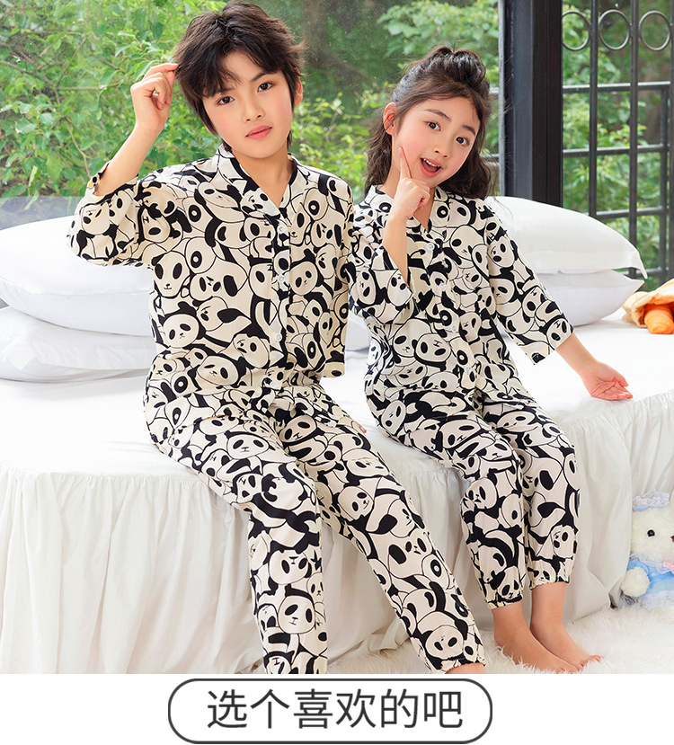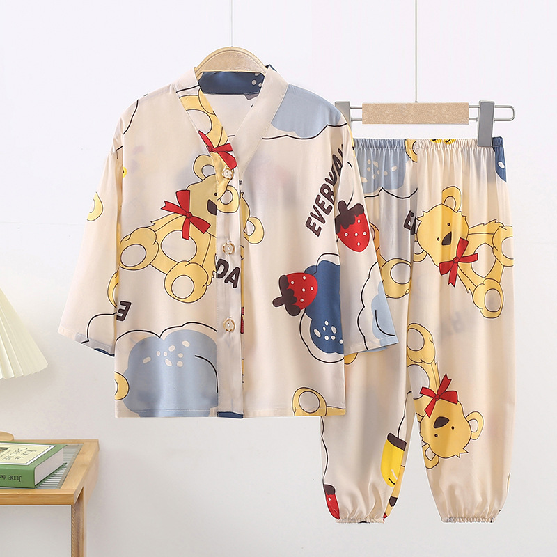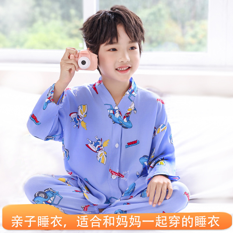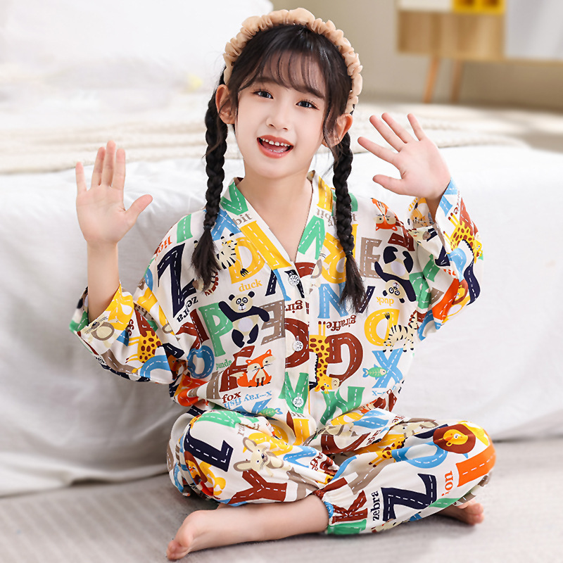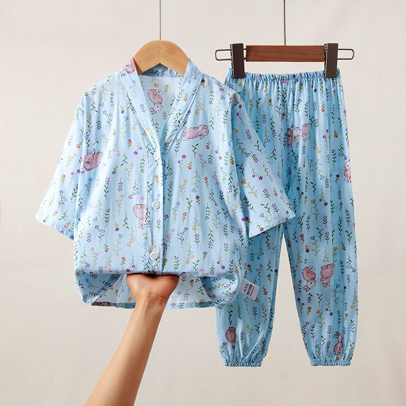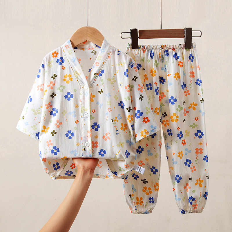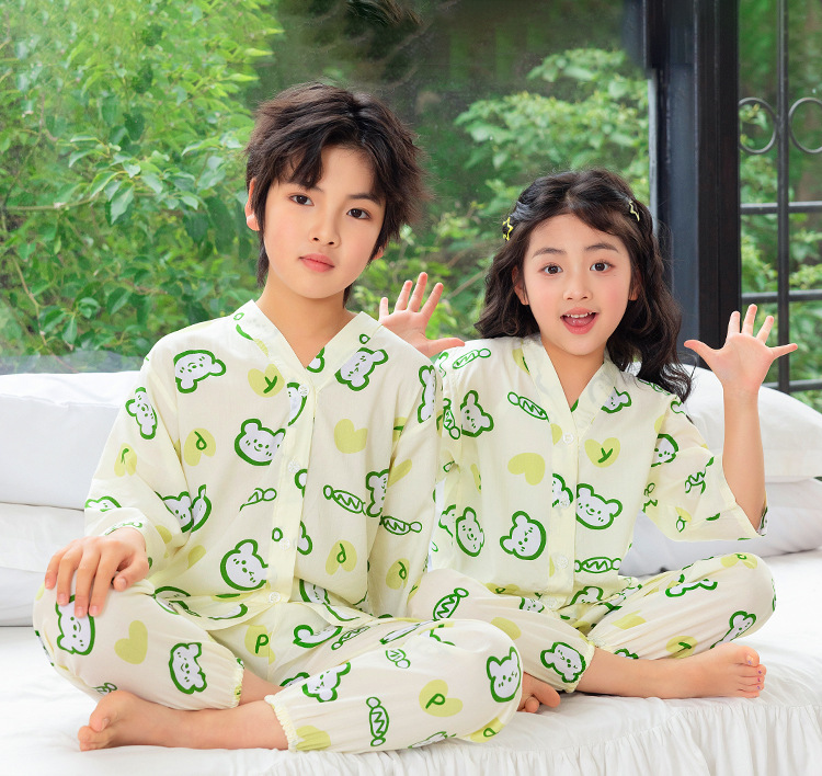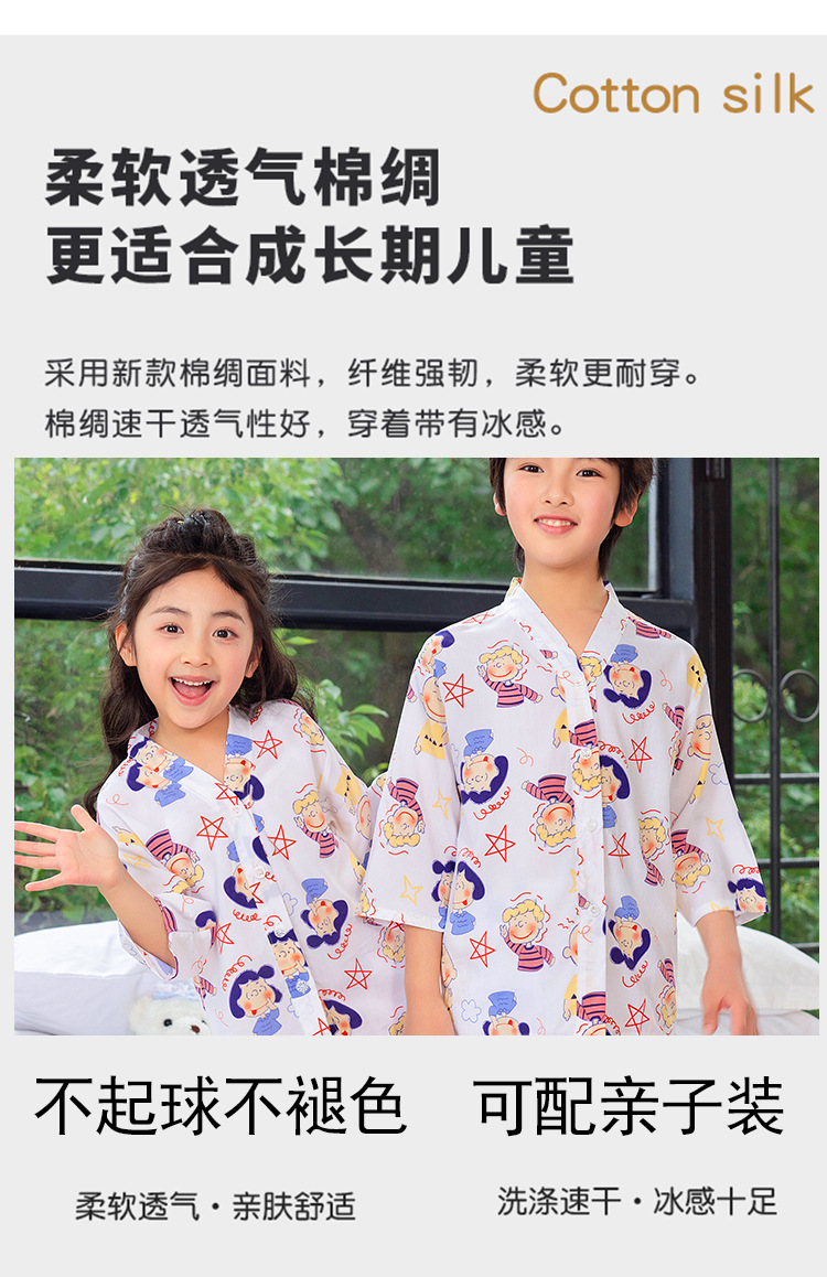 여름 어린이 면화 실크 잠옷 세트 소년과 소녀 카디건 소년과 어린 소녀 아기 얇은 면화 실크 가정 의류스토어 가기