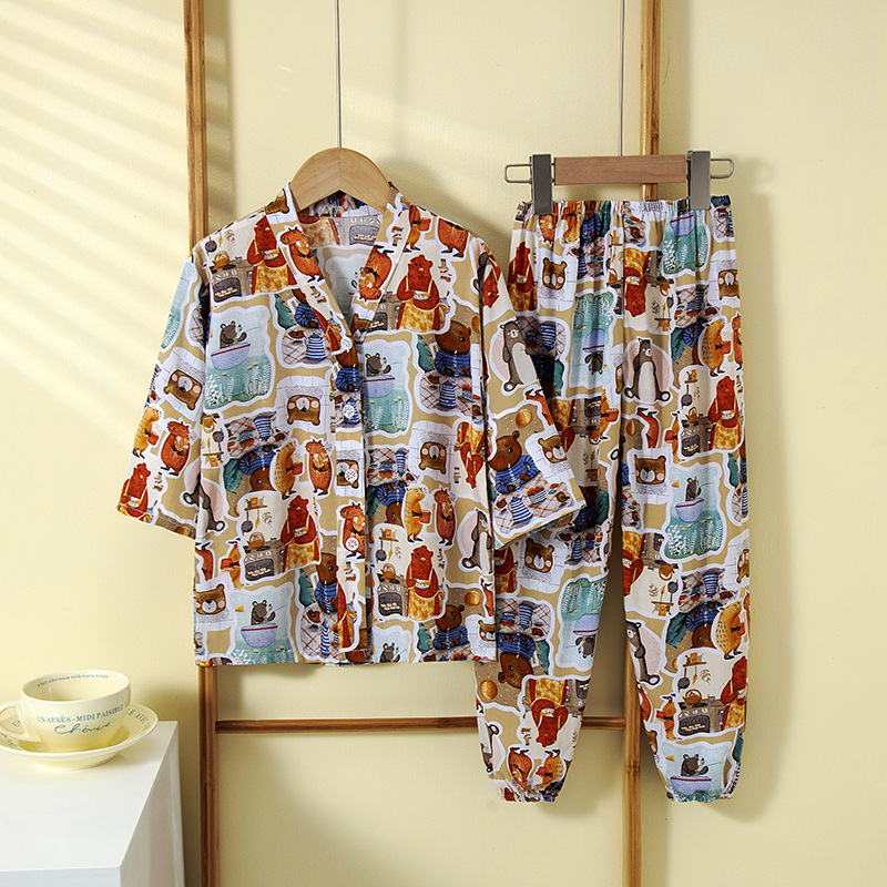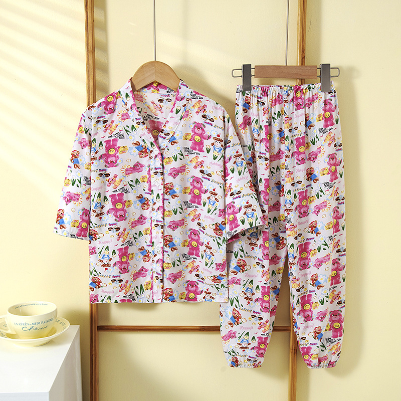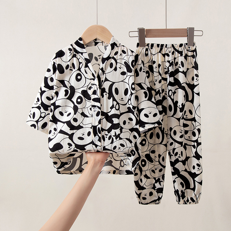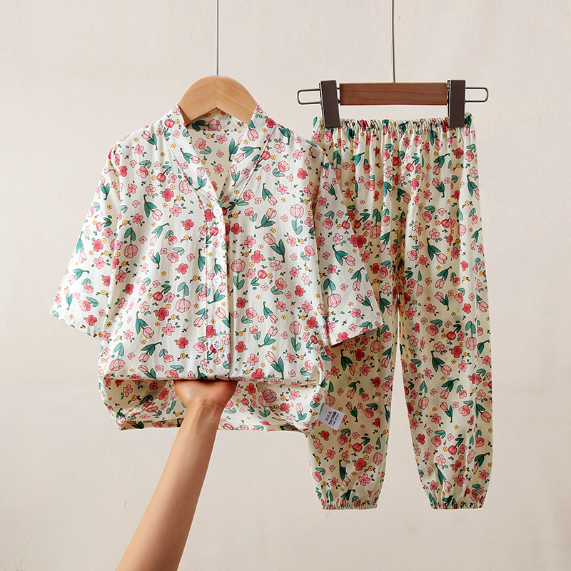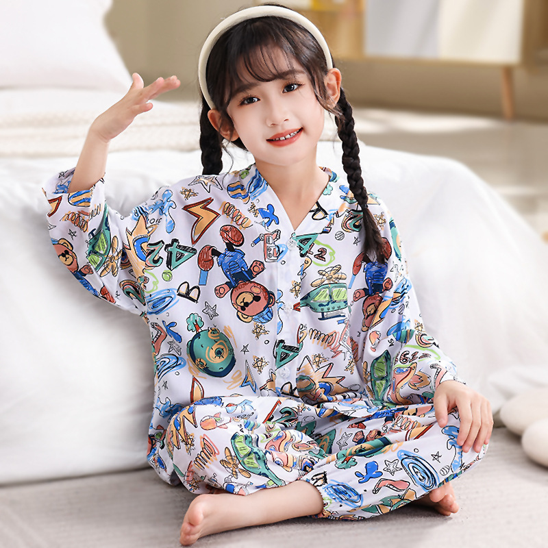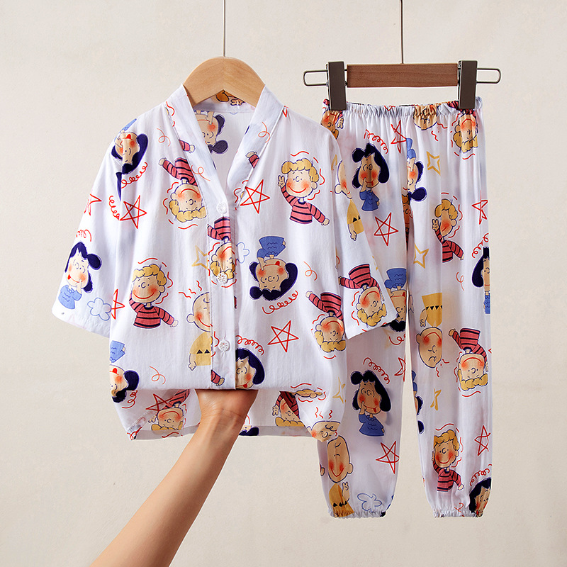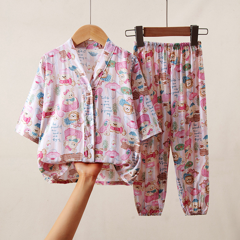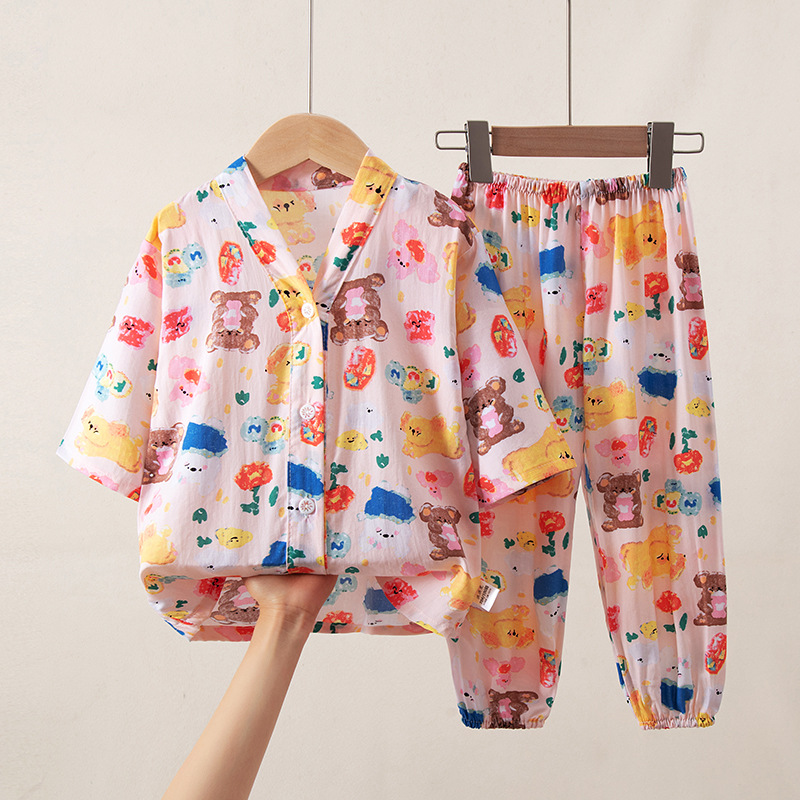 여름 어린이 면화 실크 잠옷 세트 소년과 소녀 카디건 소년과 어린 소녀 아기 얇은 면화 실크 가정 의류스토어 가기