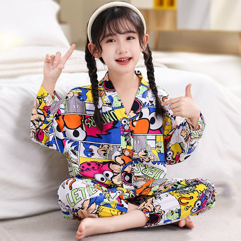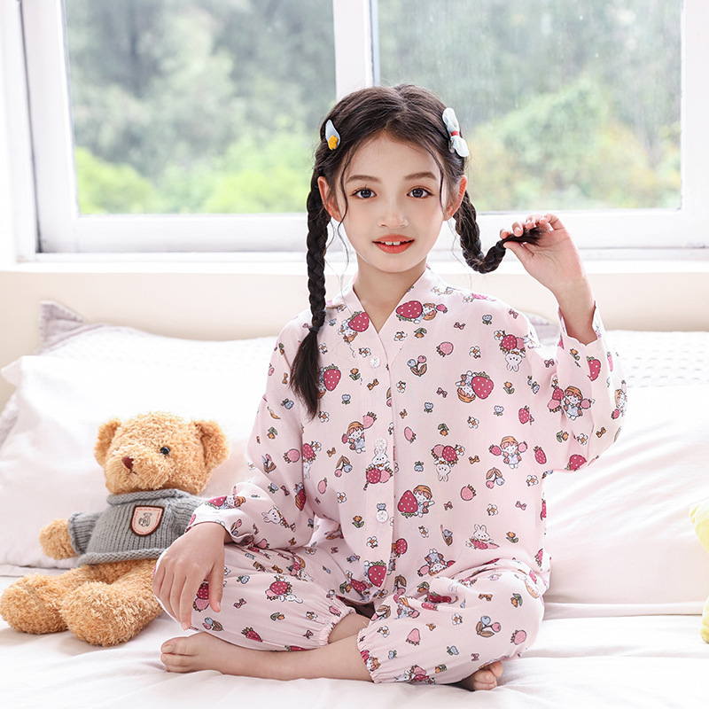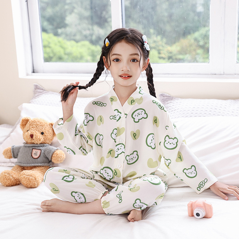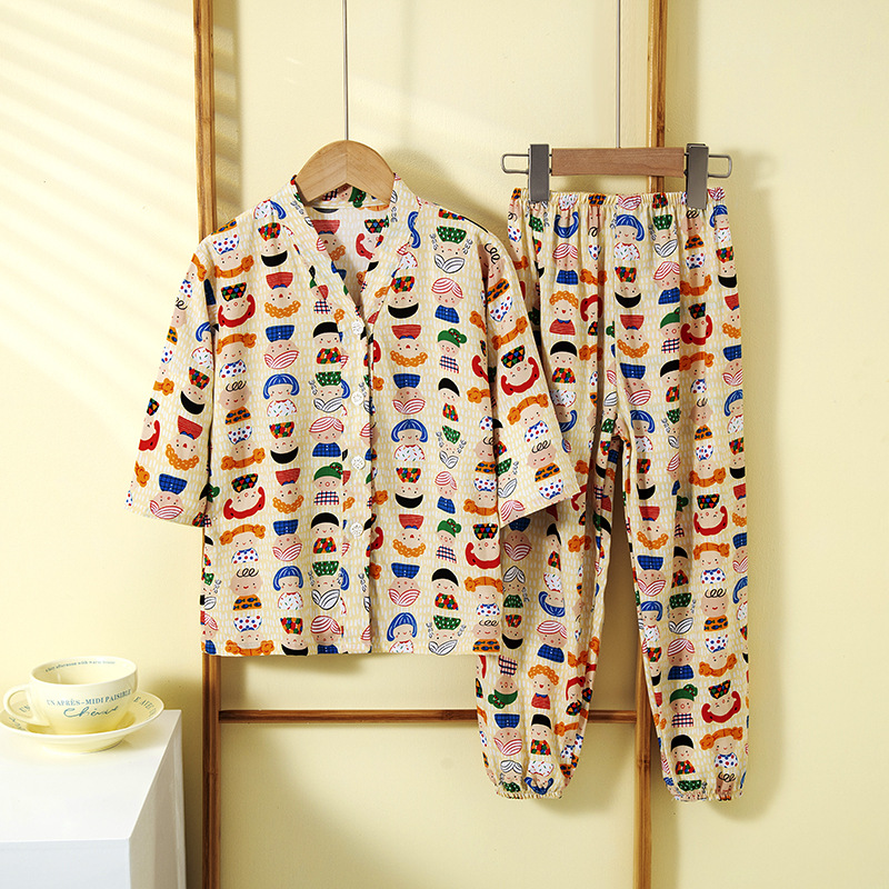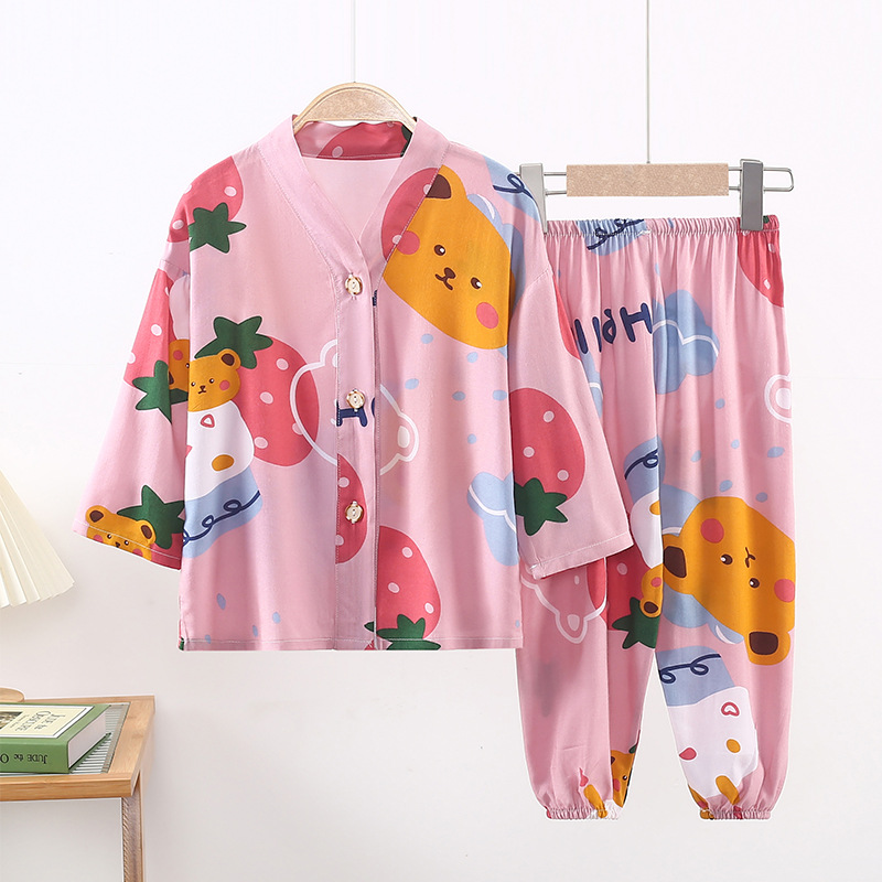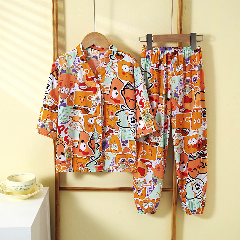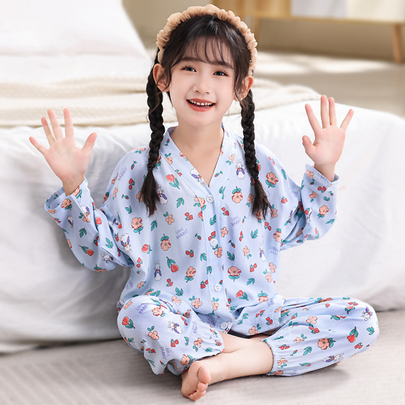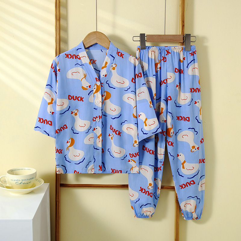 여름 어린이 면화 실크 잠옷 세트 소년과 소녀 카디건 소년과 어린 소녀 아기 얇은 면화 실크 가정 의류스토어 가기