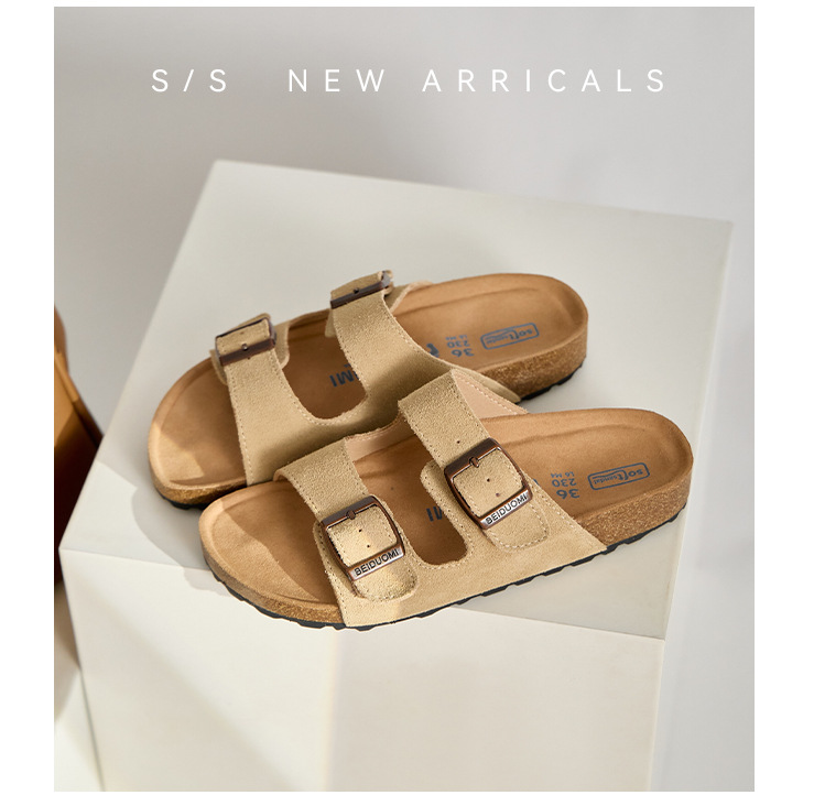 두꺼운 밑창 버켄스탁 샌들의 소가죽 버전 2025 새로운 더블 버클 스트랩 비치 아우터 캐주얼 다용도 대형 버켄스탁 슬리퍼