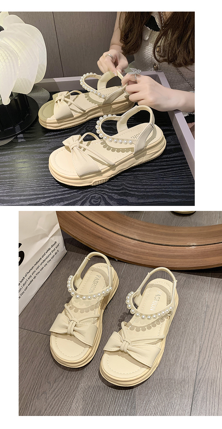 여성 샌들 2024 새로운 여름 활 요정 스타일 두꺼운 바닥 진주 스트랩 패션 오픈 토 로마 여성 신발스토어 가기