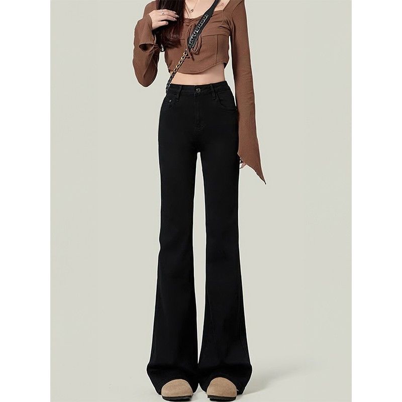 새로운 올 매치 하이 허리 스트레치 슬리밍 말굽 바지를 2024 여성을위한 배 모양의 검은 색 플레어 청바지스토어 가기