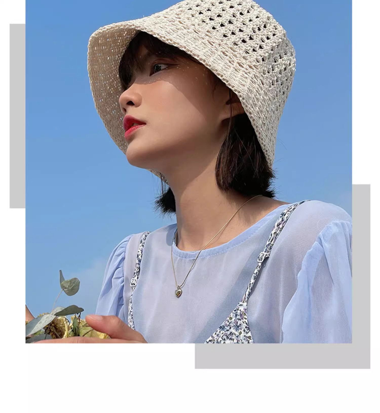 여름 중공 어부 모자 여성의 통기성 모자 얇은 자외선 차단 태양 모자 패션 유역 모자 양동이 태양 모자스토어 가기