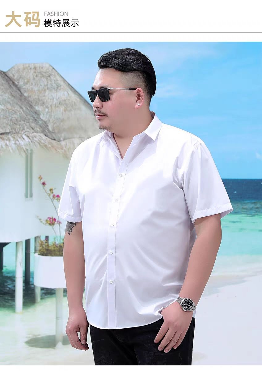 얇은 남성 플러스 사이즈 느슨한 반팔 셔츠 여름 지방 플러스 사이즈 플러스 사이즈 비즈니스 캐주얼 화이트 셔츠