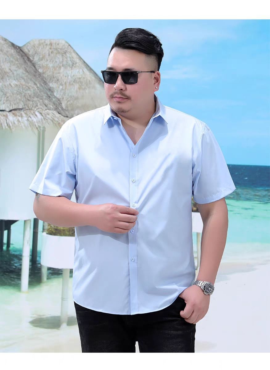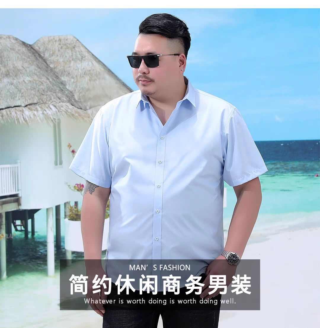 얇은 남성 플러스 사이즈 느슨한 반팔 셔츠 여름 지방 플러스 사이즈 플러스 사이즈 비즈니스 캐주얼 화이트 셔츠스토어 가기