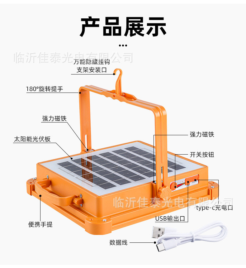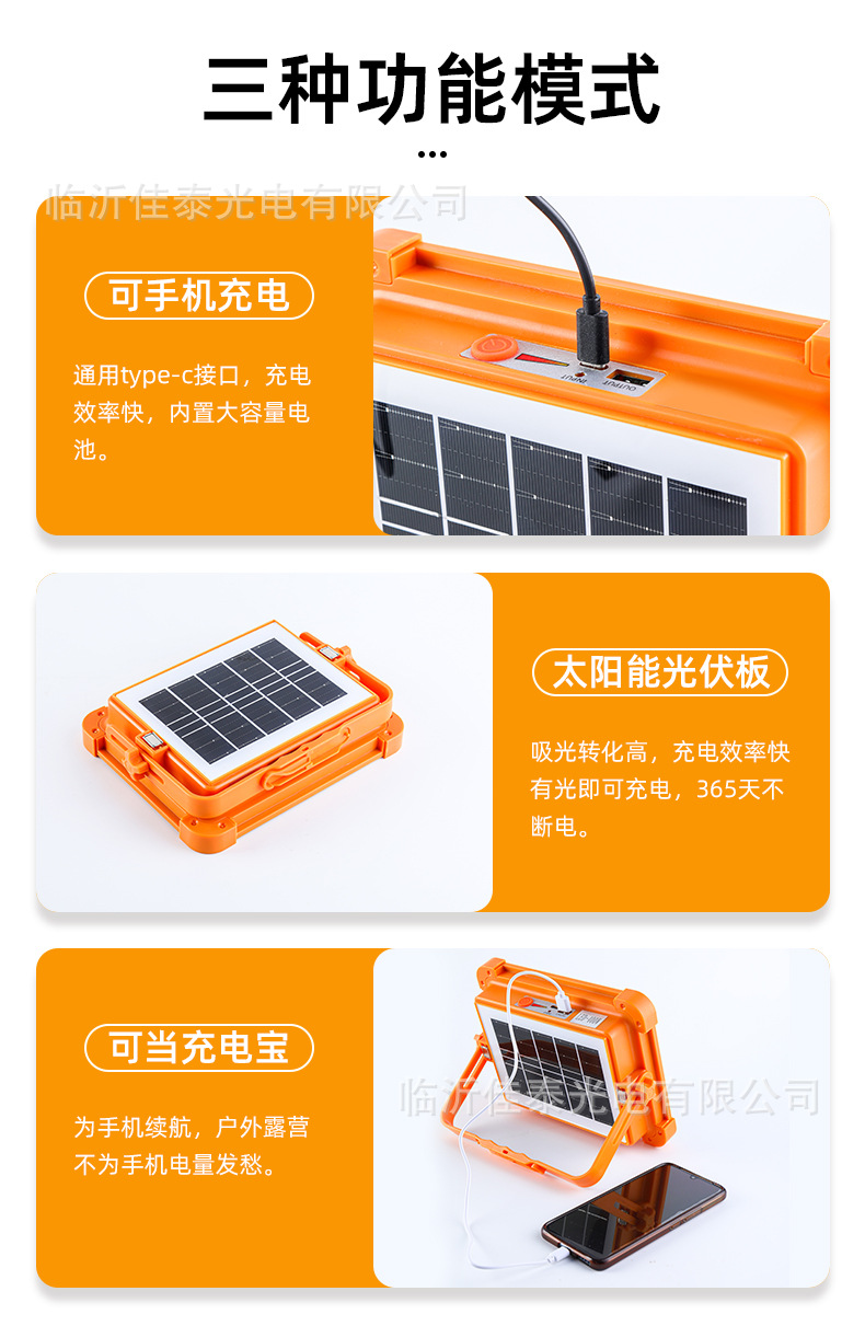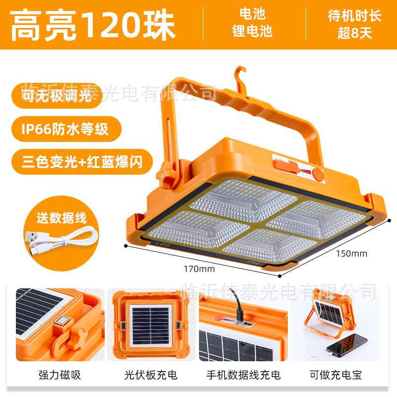 태양광 휴대용 충전식 램프 투광등 비상조명 작업등 야외 캠핑 야시장 노점용 작은 노란색 램프