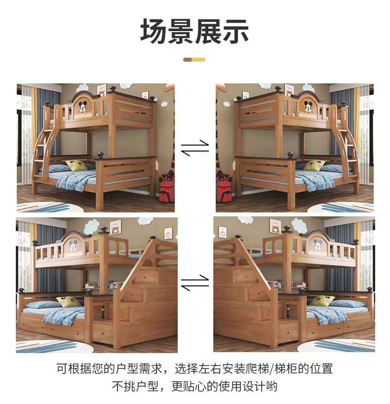 모든 단단한 나무 위층 및 아래층 높고 낮은 침대 엄마와 아이 침대 통나무 어린이 침대 더블 레이어 다기능 작은 아파트 십대 더블