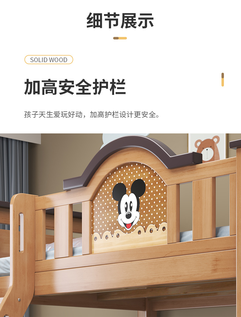 모든 단단한 나무 위층 및 아래층 높고 낮은 침대 엄마와 아이 침대 통나무 어린이 침대 더블 레이어 다기능 작은 아파트 십대 더블스토어 가기