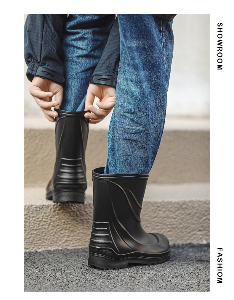 일본과 한국 패션 올 매치 남성용 장화 방수 미끄럼 방지 짧은 장화 착용 방지 낚시 운전 바다 세차장