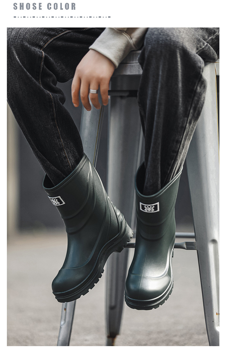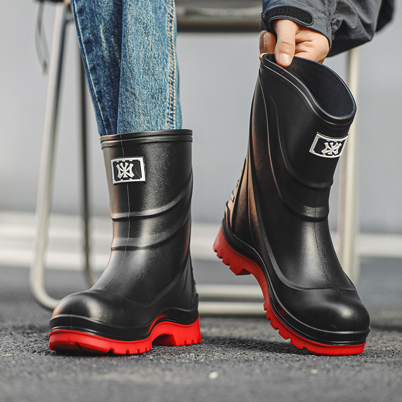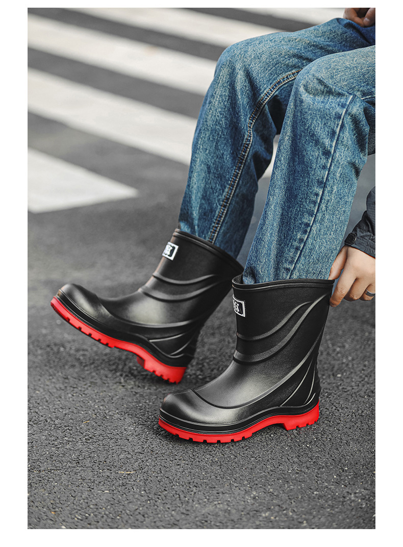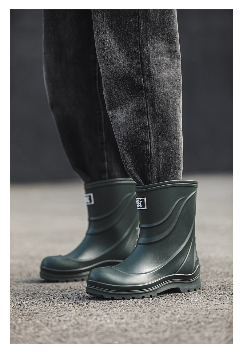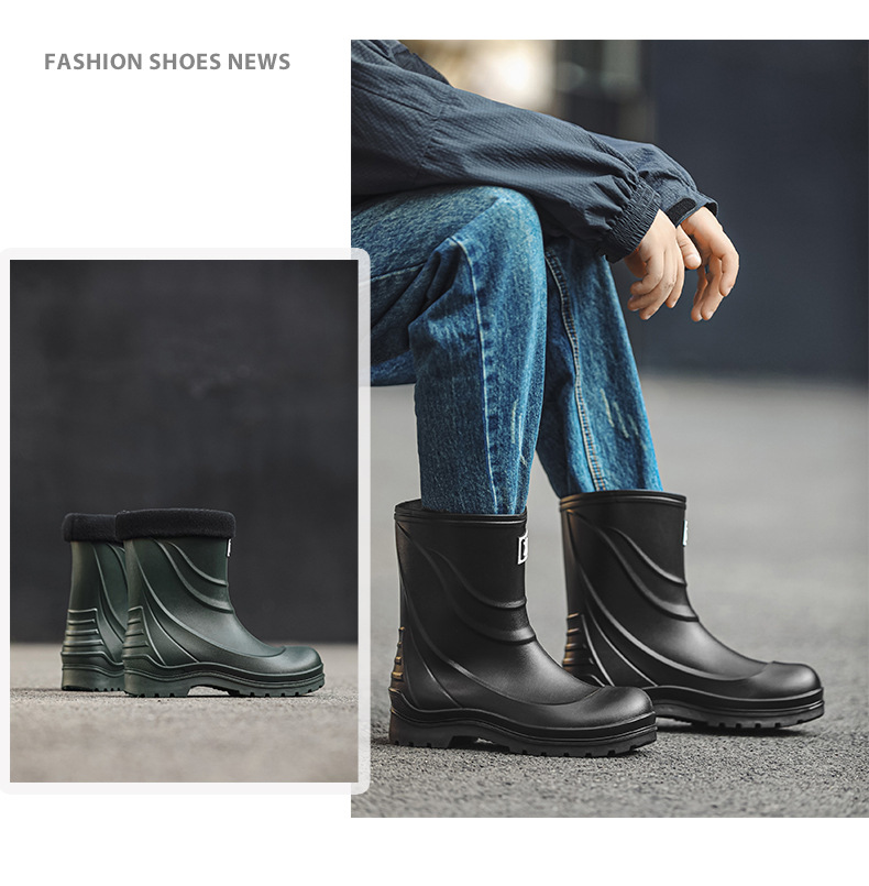 일본과 한국 패션 올 매치 남성용 장화 방수 미끄럼 방지 짧은 장화 착용 방지 낚시 운전 바다 세차장스토어 가기