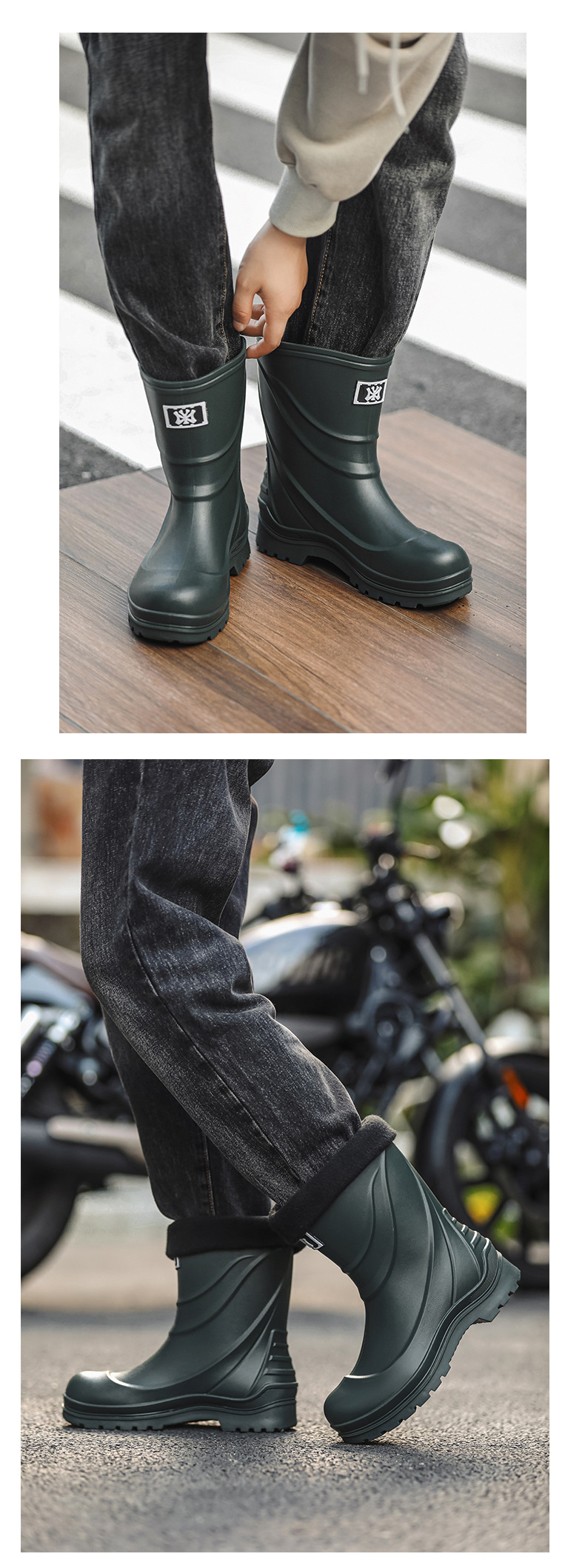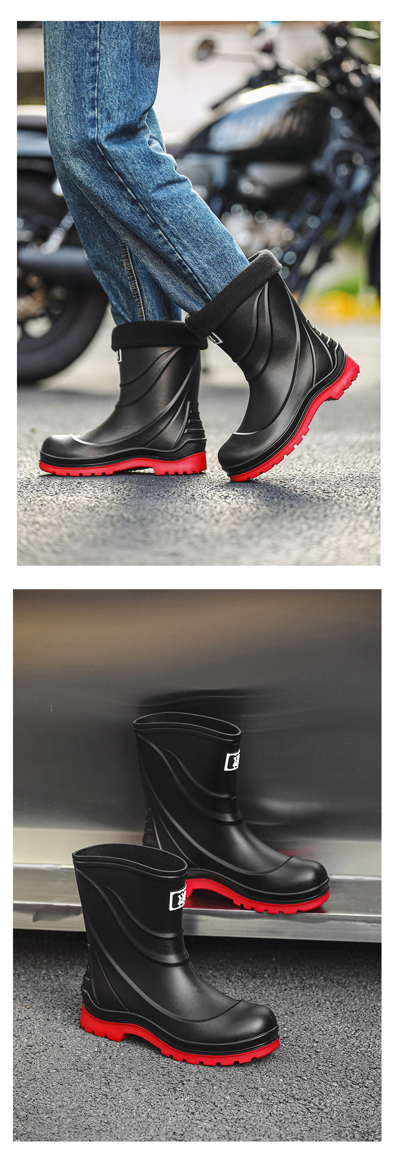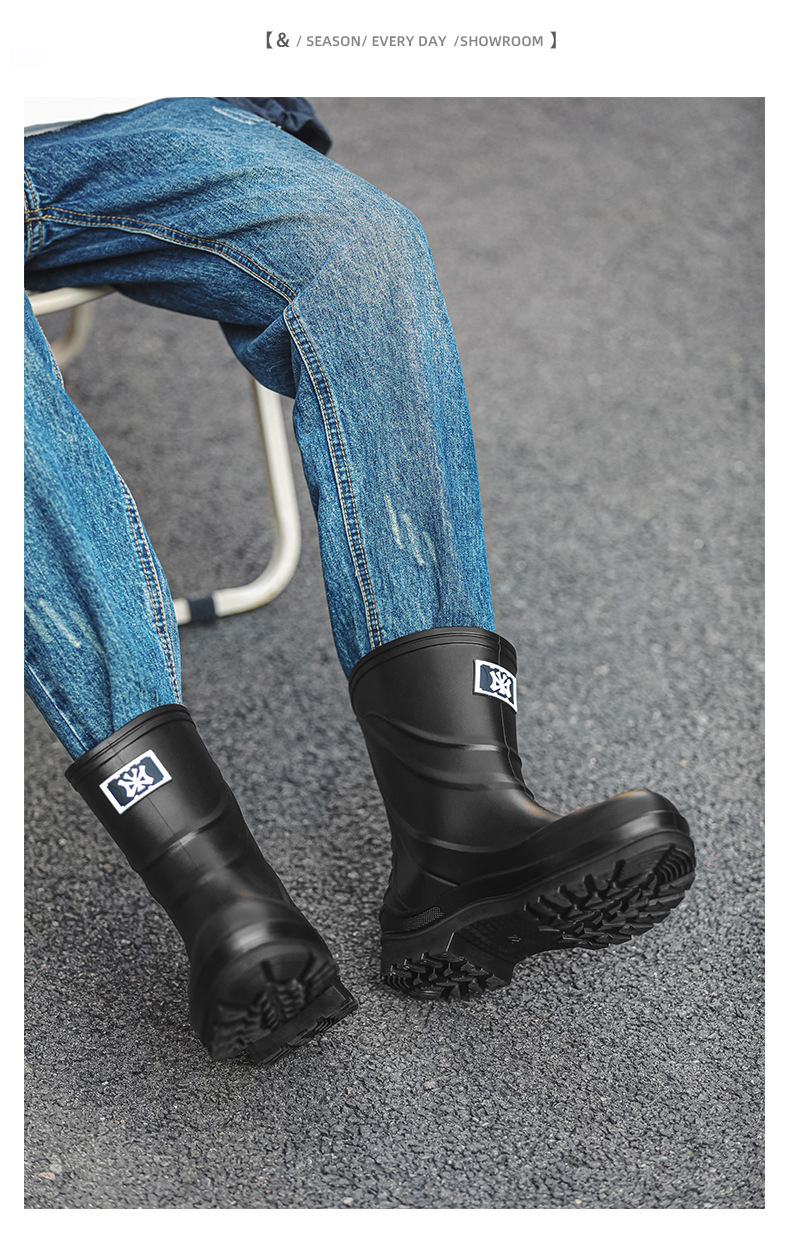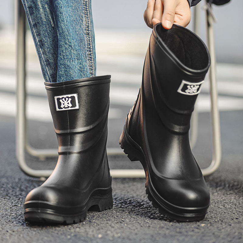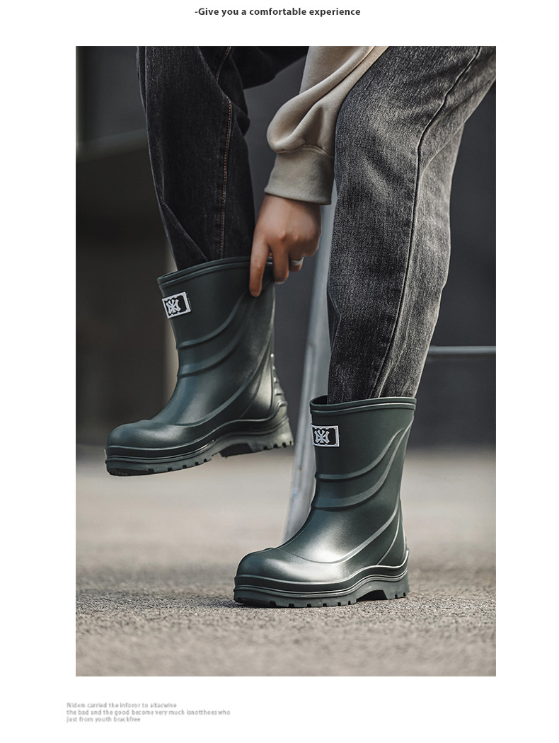 일본과 한국 패션 올 매치 남성용 장화 방수 미끄럼 방지 짧은 장화 착용 방지 낚시 운전 바다 세차장스토어 가기