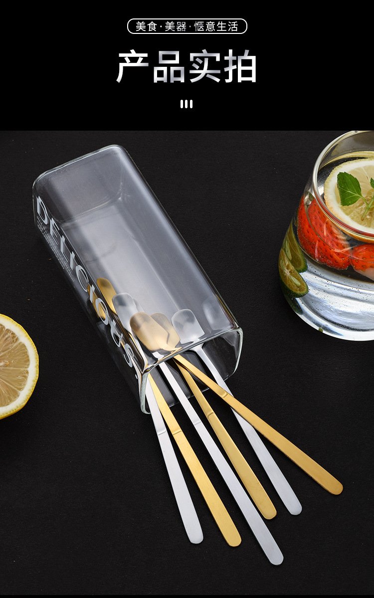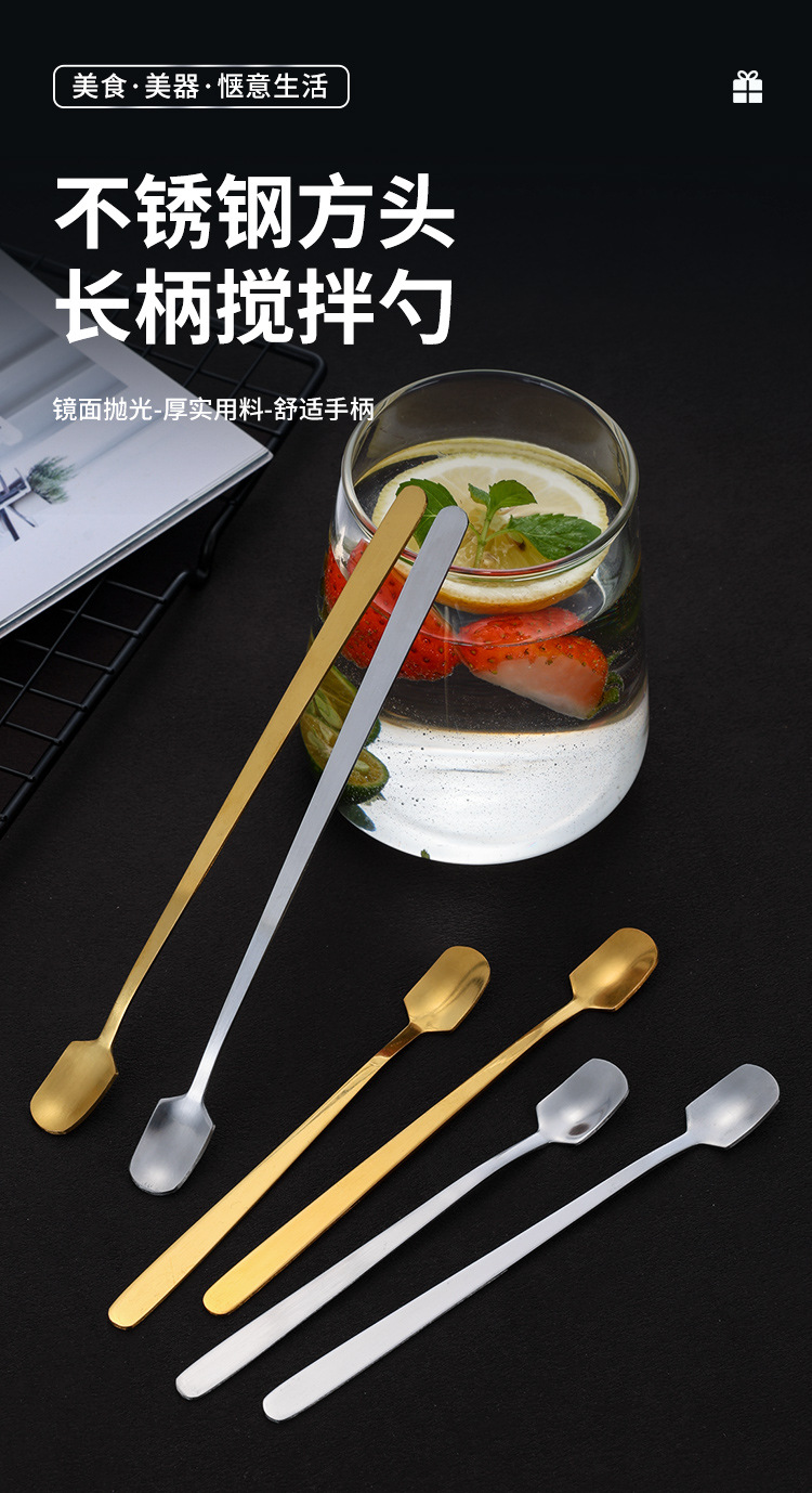 스테인레스 스틸 스푼 골든 스퀘어 스푼 아이스 스푼 약 스푼 긴 핸들 커피 스푼 유리 혼합 숟가락 공장 직접 판매스토어 가기