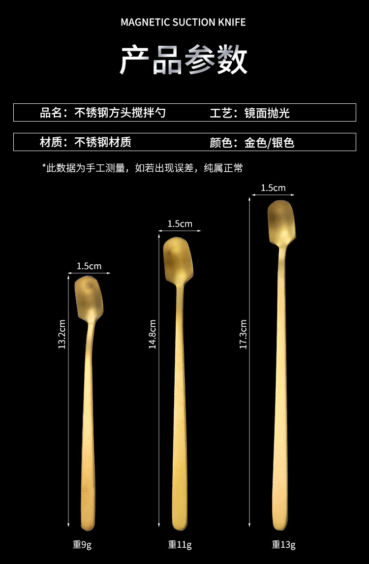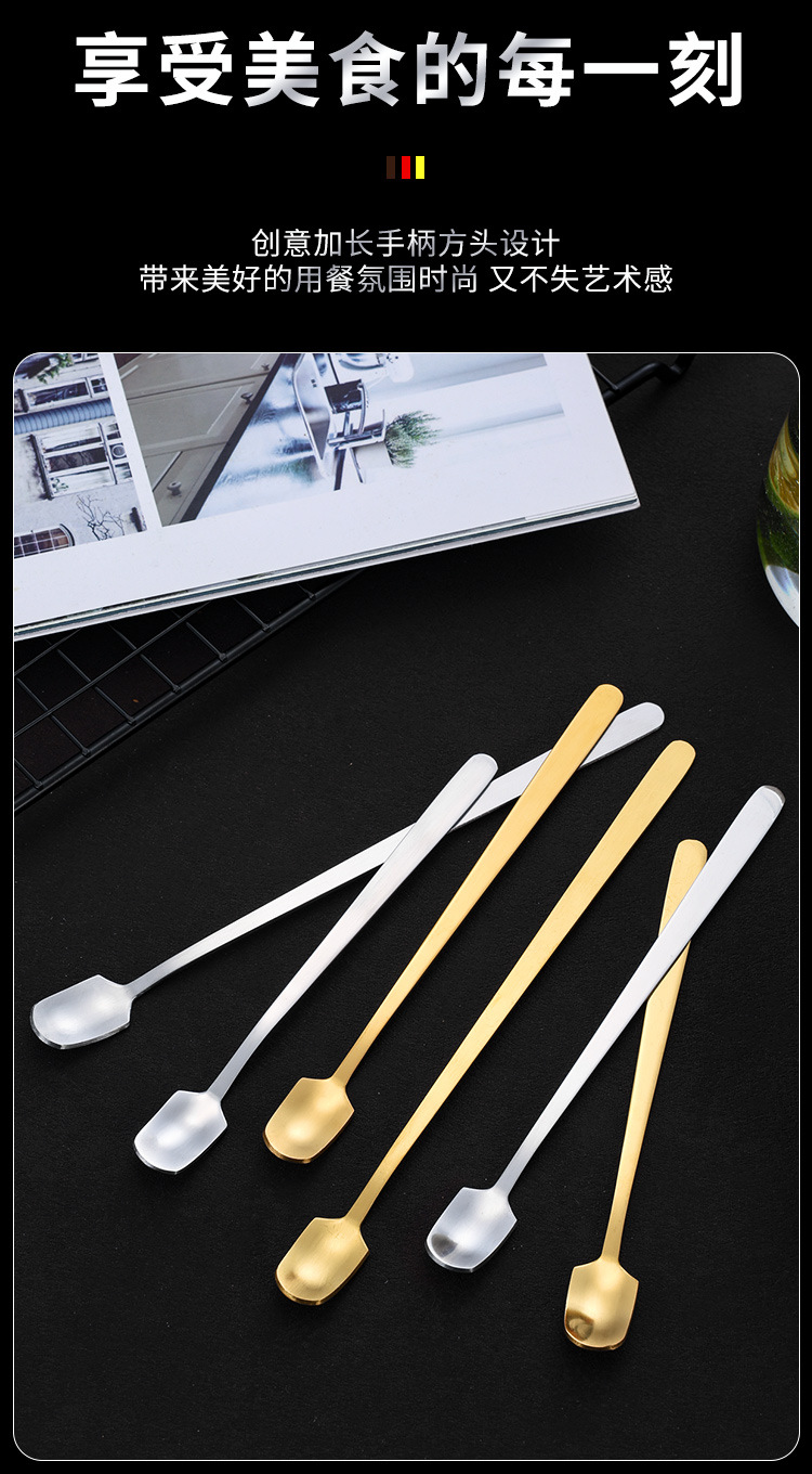 스테인레스 스틸 스푼 골든 스퀘어 스푼 아이스 스푼 약 스푼 긴 핸들 커피 스푼 유리 혼합 숟가락 공장 직접 판매
