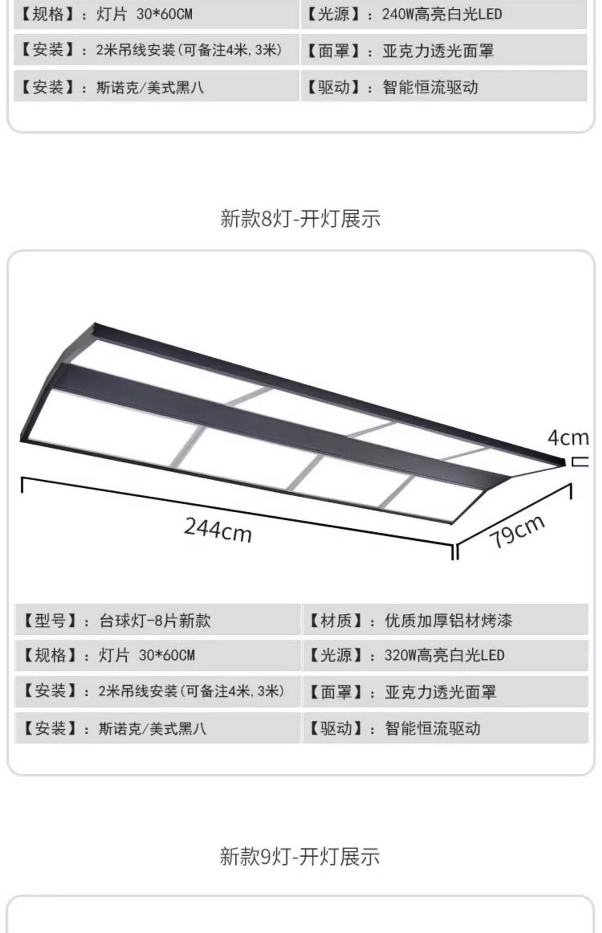 당구 램프, 당구 샹들리에, 고휘도 LED 그림자 없는 램프, 검은색 8개의 스누커 공 눈 보호 당구 라이브러리 특수 램프스토어 가기