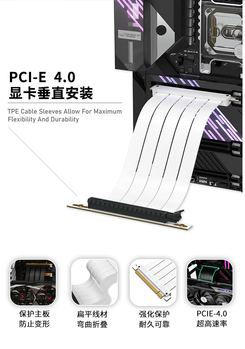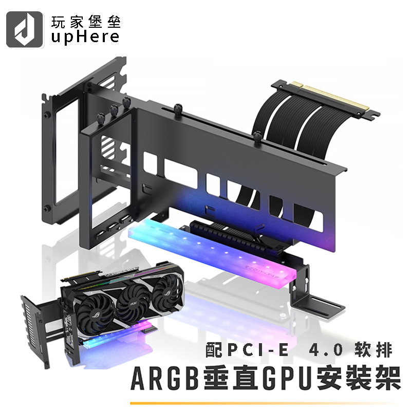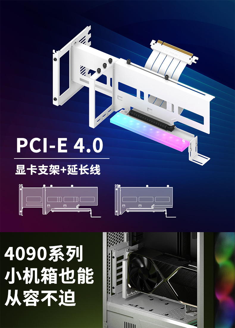 그래픽 카드 흑백 수직 장착 스탠드 PCIE5/4.0 그래픽 카드 연장 케이블 ITX 어댑터 케이블 직각 90도 풀 스피드스토어 가기