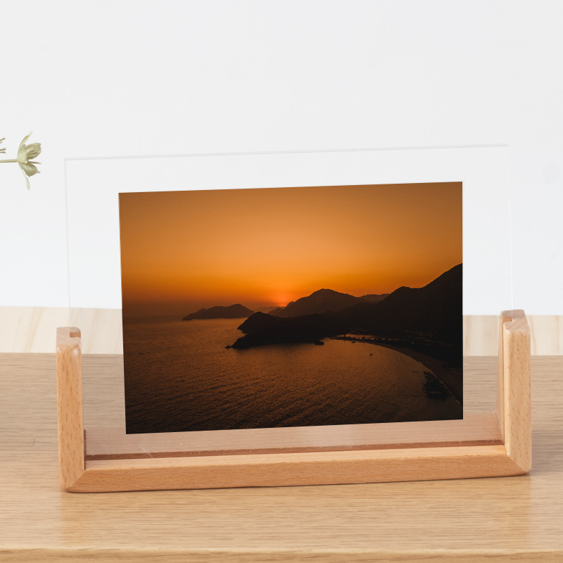 데스크탑 창조적 인 간단한 나무 사진 프레임 장식 아크릴 너도밤 나무 사진 프레임 6 인치 U 자형 단단한 나무 테이블 카드 도매