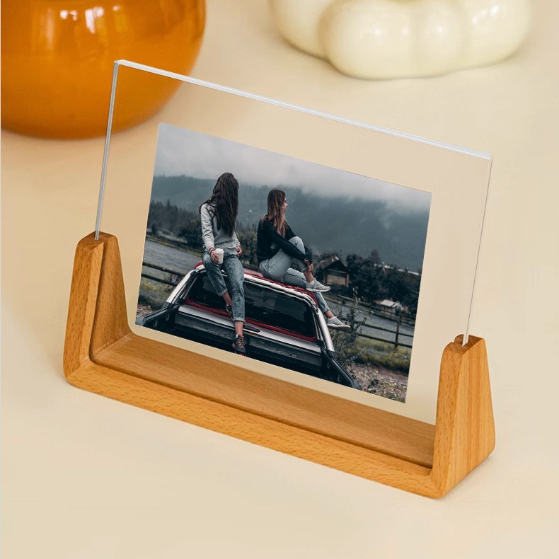 데스크탑 창조적 인 간단한 나무 사진 프레임 장식 아크릴 너도밤 나무 사진 프레임 6 인치 U 자형 단단한 나무 테이블 카드 도매스토어 가기