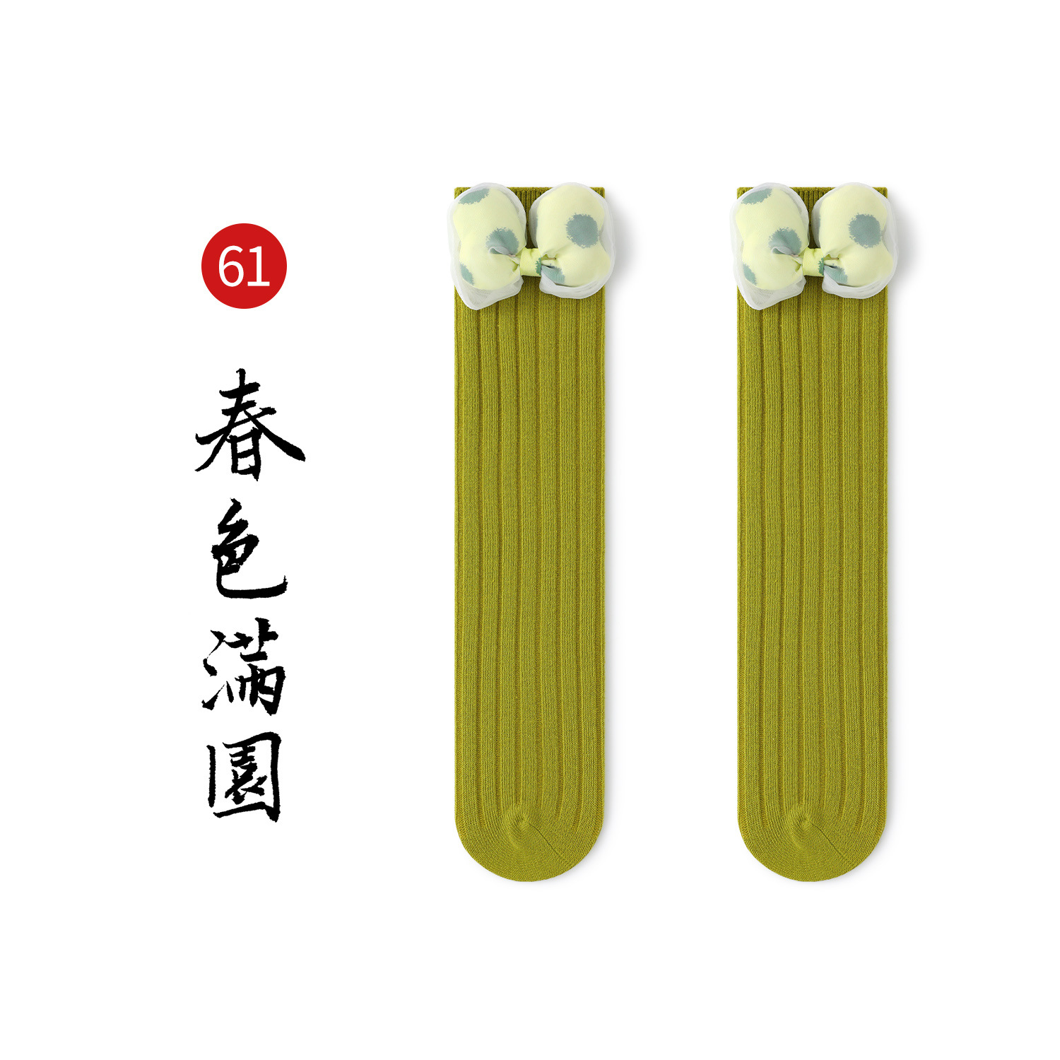 소녀 양말 봄과 가을 새로운 아기 빗질 코튼 뼈없는 스타킹 어린이 줄무늬 중반 종아리 양말 소녀의 종아리 양말