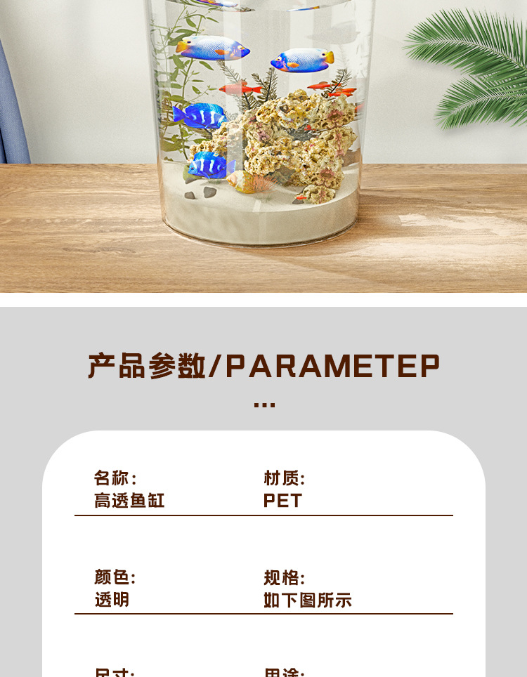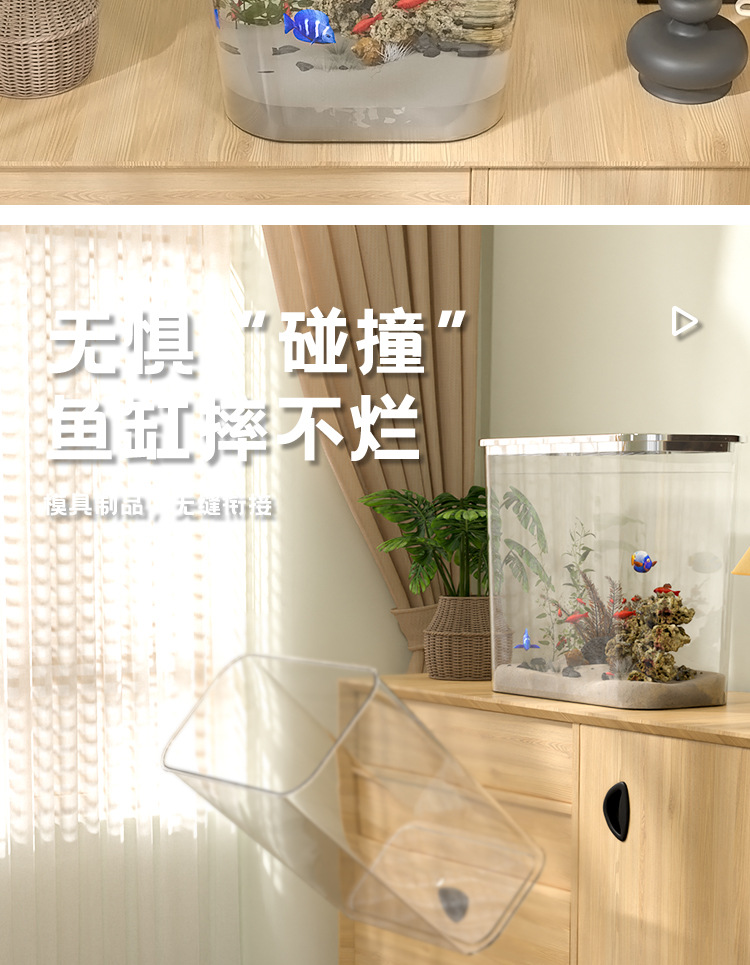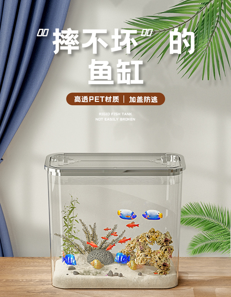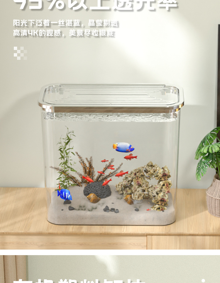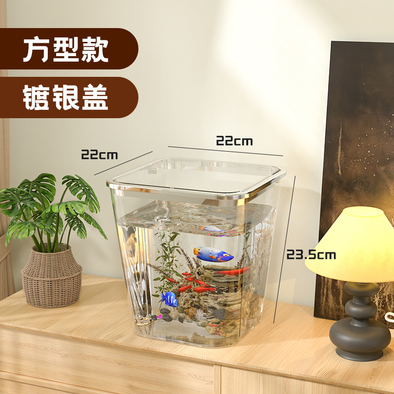 가벼운 고급 투명 어항 플라스틱 베어 탱크 데스크탑 거실 생태 두유 금붕어 탱크 풍경 게으른 거북이 수생 탱크