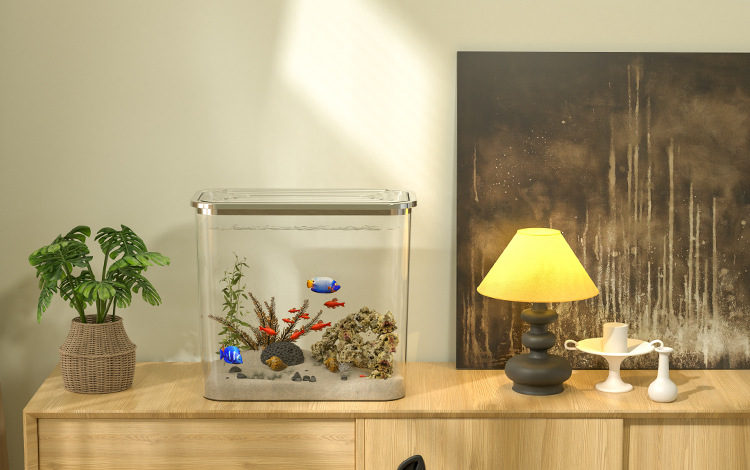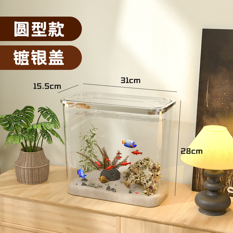 가벼운 고급 투명 어항 플라스틱 베어 탱크 데스크탑 거실 생태 두유 금붕어 탱크 풍경 게으른 거북이 수생 탱크스토어 가기