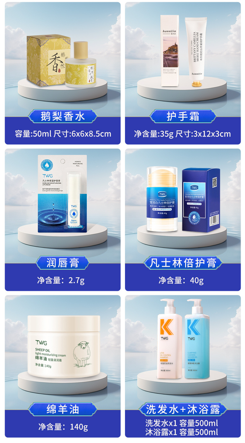• 양 크림 + 스퀘어 타월 + 네일 백 + 바셀린 더블 케어 크림 + 립스틱