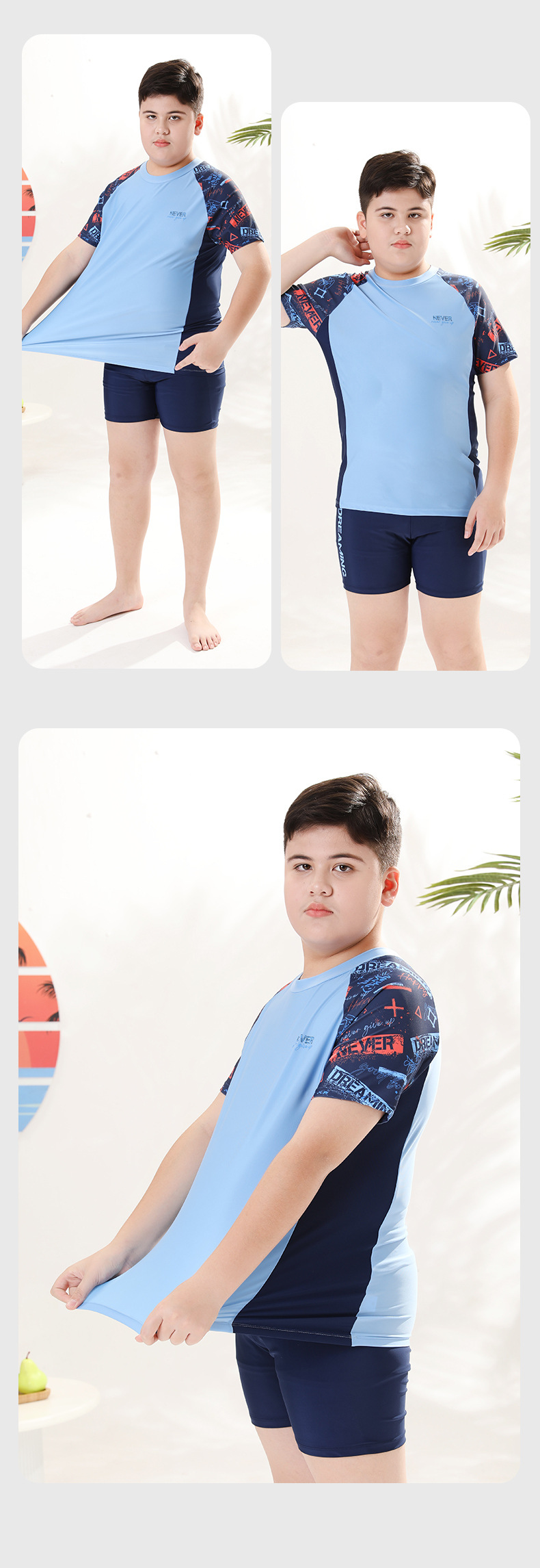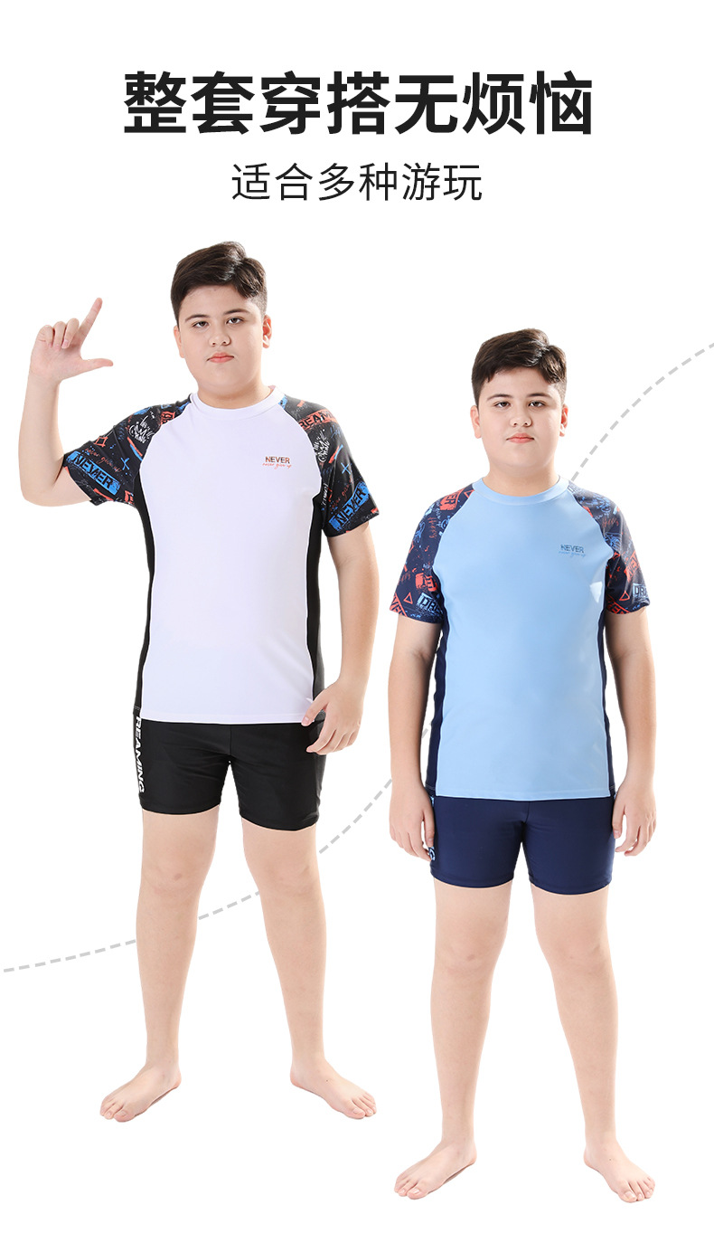 뚱뚱한 어린이 수영복 세트, 분리형 수영복, 반팔, 중대형 어린이 및 청소년용, 특대 사이즈 수영복, 일본 스타일스토어 가기