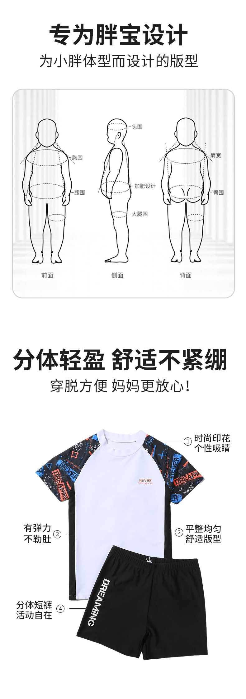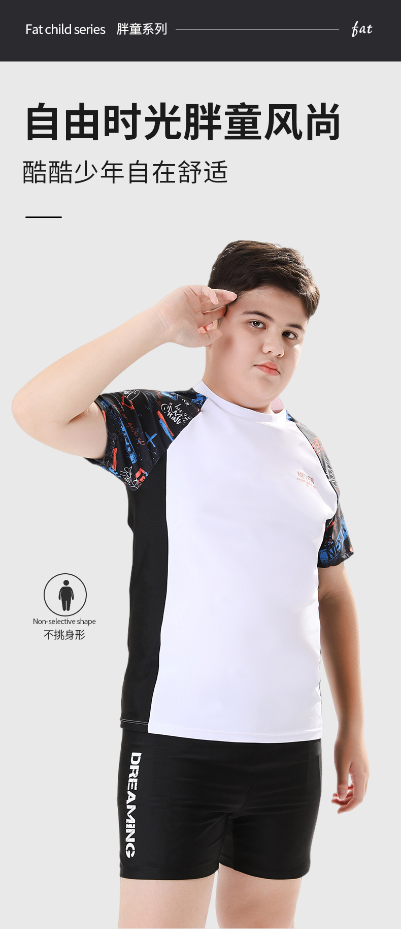 뚱뚱한 어린이 수영복 세트, 분리형 수영복, 반팔, 중대형 어린이 및 청소년용, 특대 사이즈 수영복, 일본 스타일
