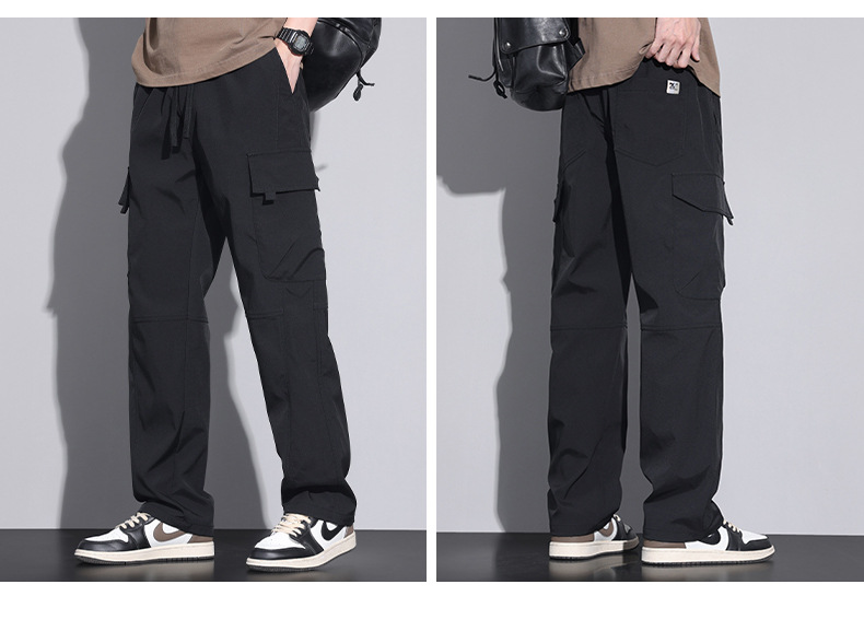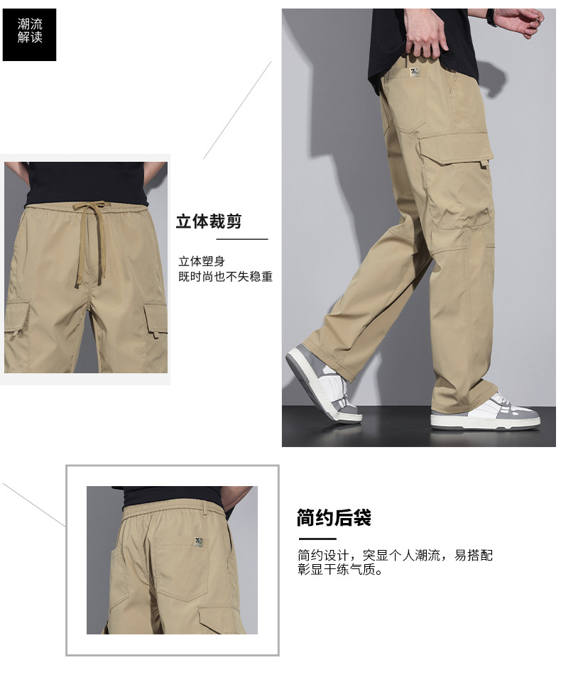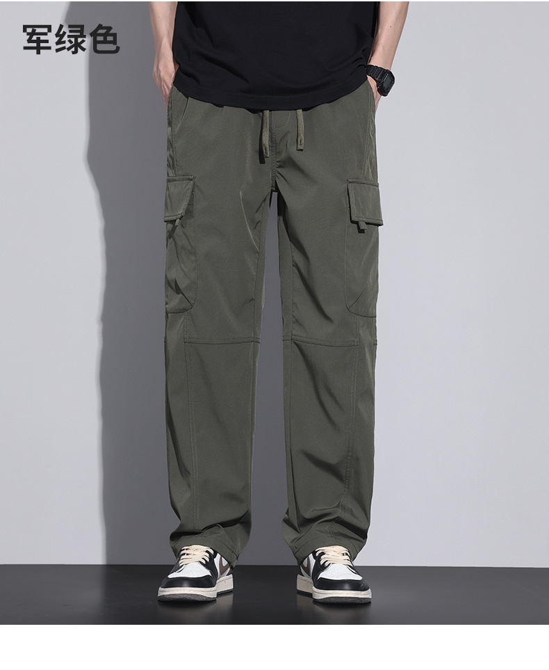 작업복 아이스 실크 캐주얼 바지 남성용 남성용 바지 여름 얇은 스트레이트 2025 새로운 스타일 충전 바지 공장 배송스토어 가기