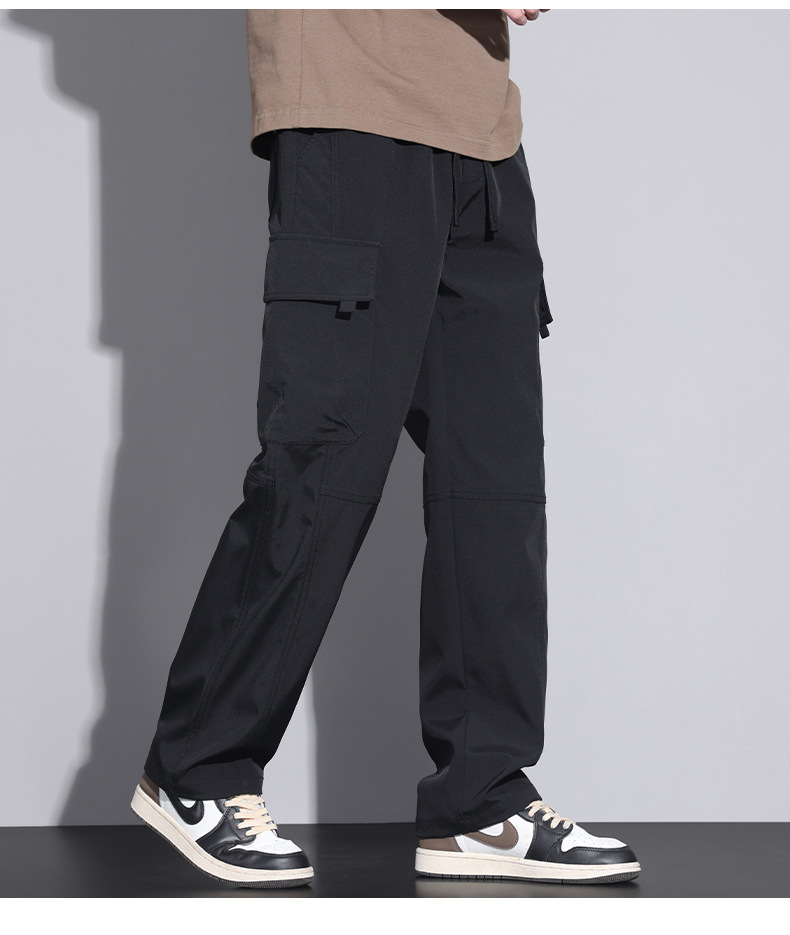 작업복 아이스 실크 캐주얼 바지 남성용 남성용 바지 여름 얇은 스트레이트 2025 새로운 스타일 충전 바지 공장 배송