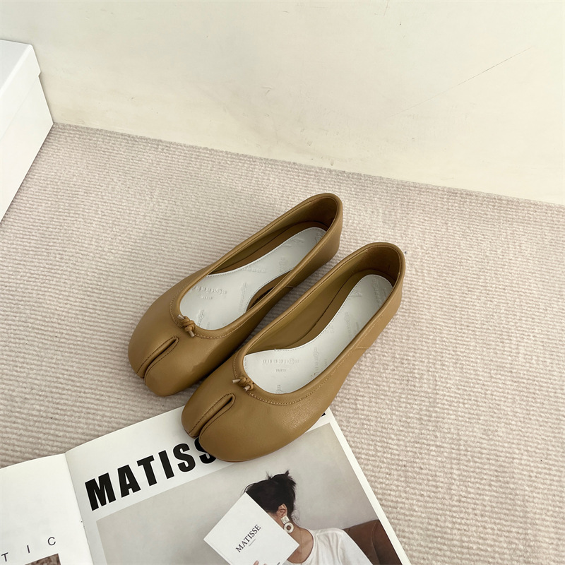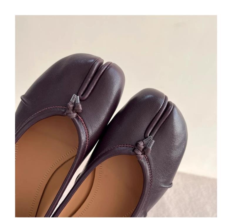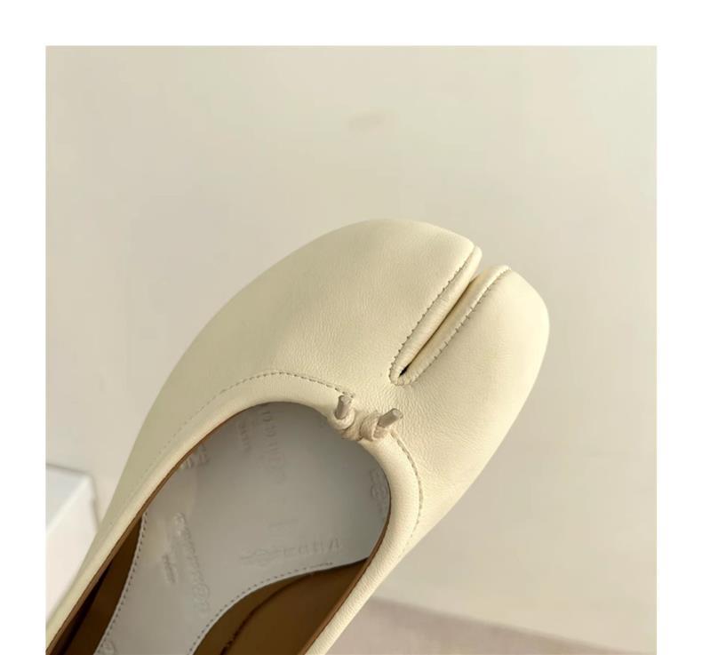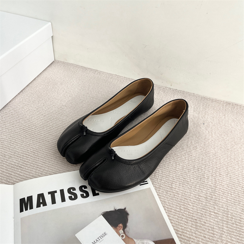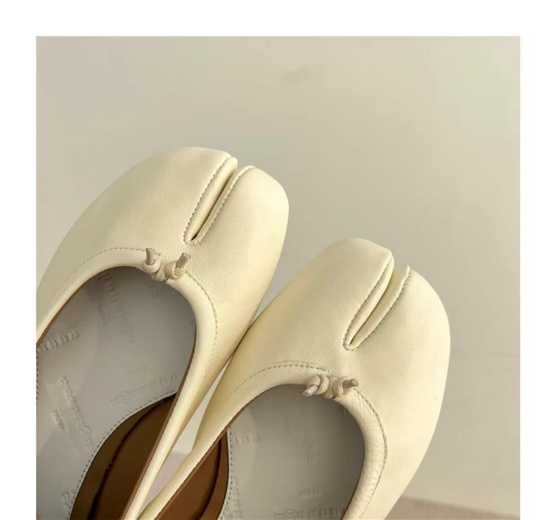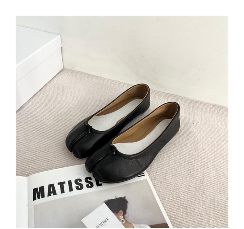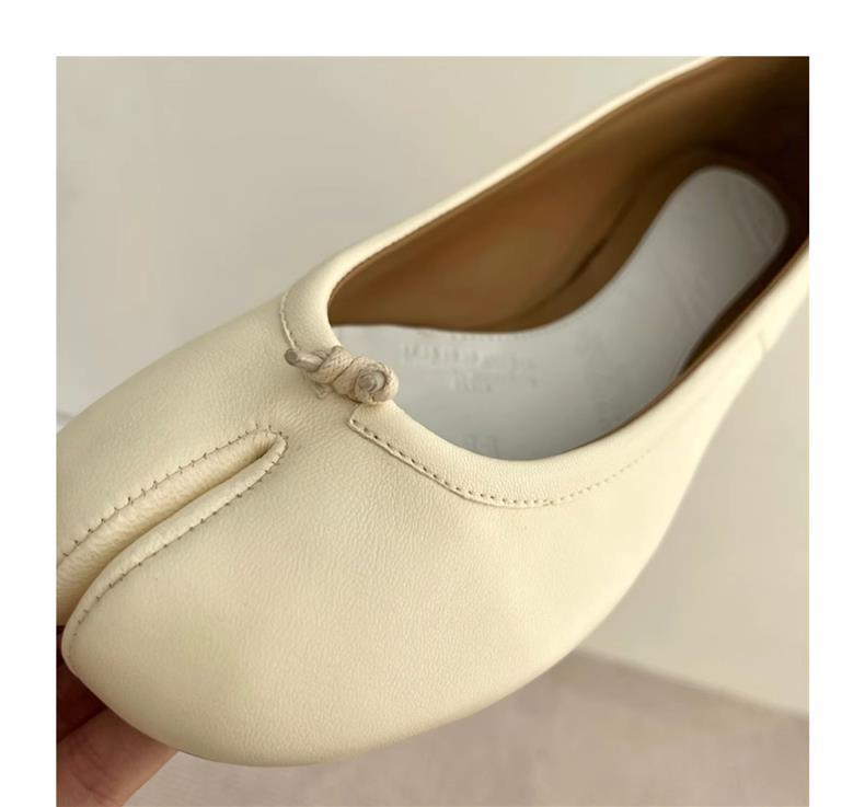 봄과 여름 2024 새로운 빈티지 스플릿 발가락 신발 tabi 정품 가죽 로우 힐 로우 입 편안한 양가죽 플랫 댄스 신발 여성용